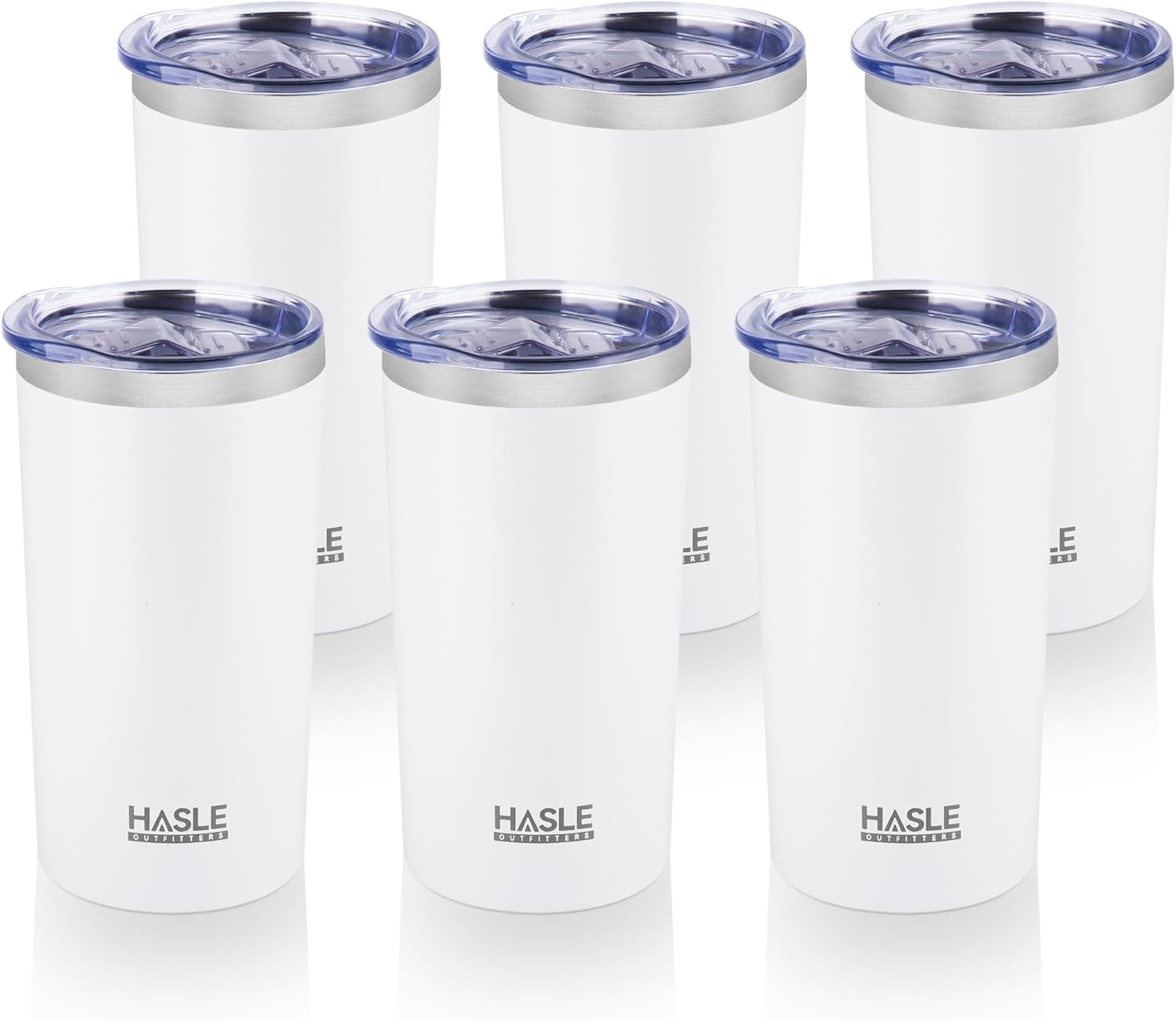 HASLE OUTFITTERS 12 oz Skinny Tumbler, Stainless Steel Insulated Slim Tumbler set bulk with Lid, Reusable Double Wall Travel Coffee Mug, Durable Powder Coated Travel Water Cup(White,6)