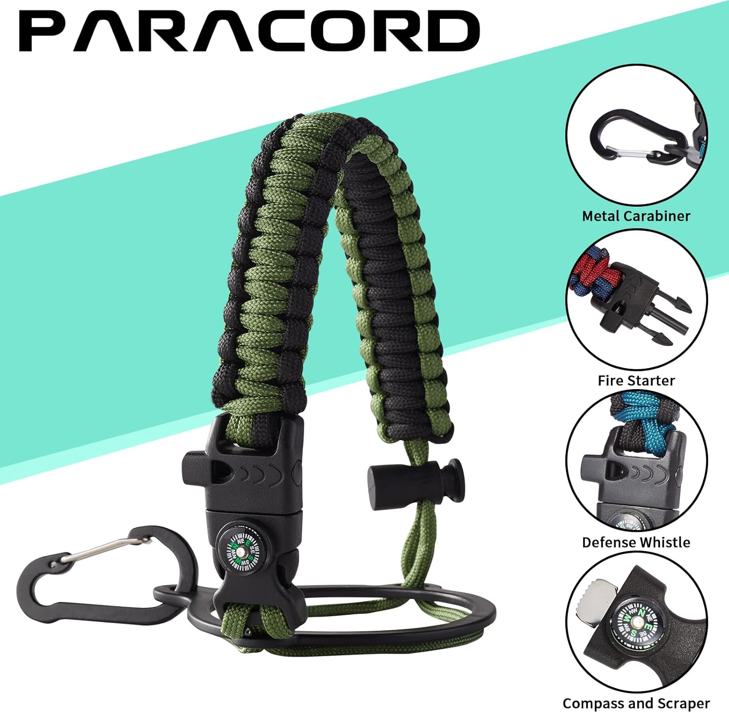- UNIQUE PARACORD HANDLE: Bright color paracord matches the flask water bottle to give you a youthful vibe while adding a personal style. With a compass, safety loop, metal carabiner, flint, igniter and whistle to become your survival tool, making the 32 oz stainless steel water bottle with paracord an ideal survival kit for expeditions in the wild