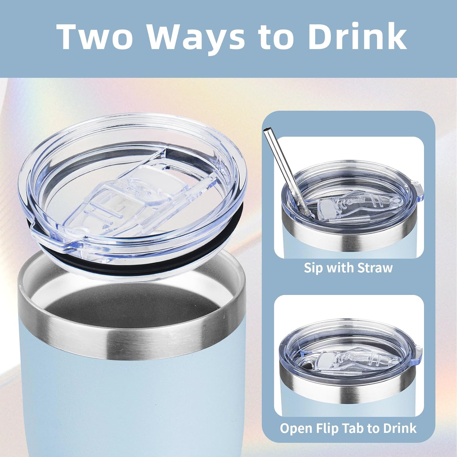 - 🥤【Packing List】: 20oz insulated coffee tumbler with leak-proof lid, two stainless steel straws (one curved and one straight), straw cleaning brush is a great addition (HAND WASH RECOMMENDED). Best for home, office, camping, vacation, sports, travel, etc