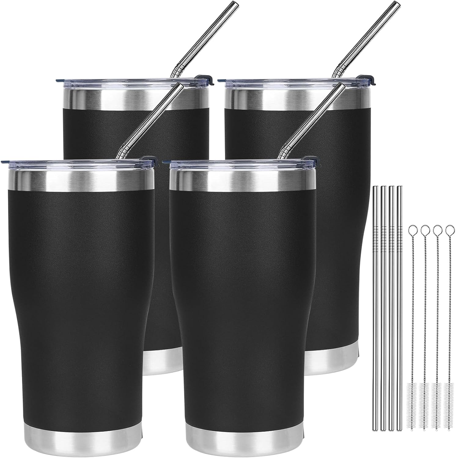 MEZMUT 4 Pack 20oz Insulated Coffee Tumbler with Lid and Straw Double Wall Vacuum Insulated Cup Stainless Steel Travel Mugs Leakproof Powder Coated Tumbler for Indoor Outdoor(Black)