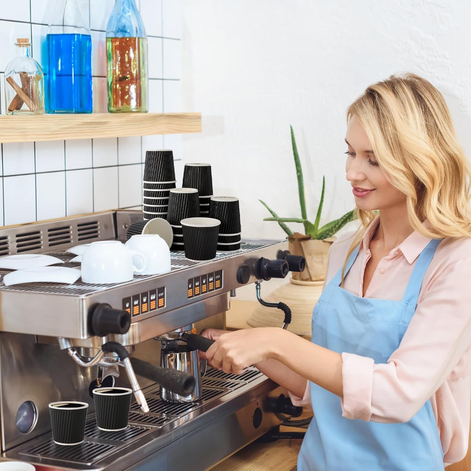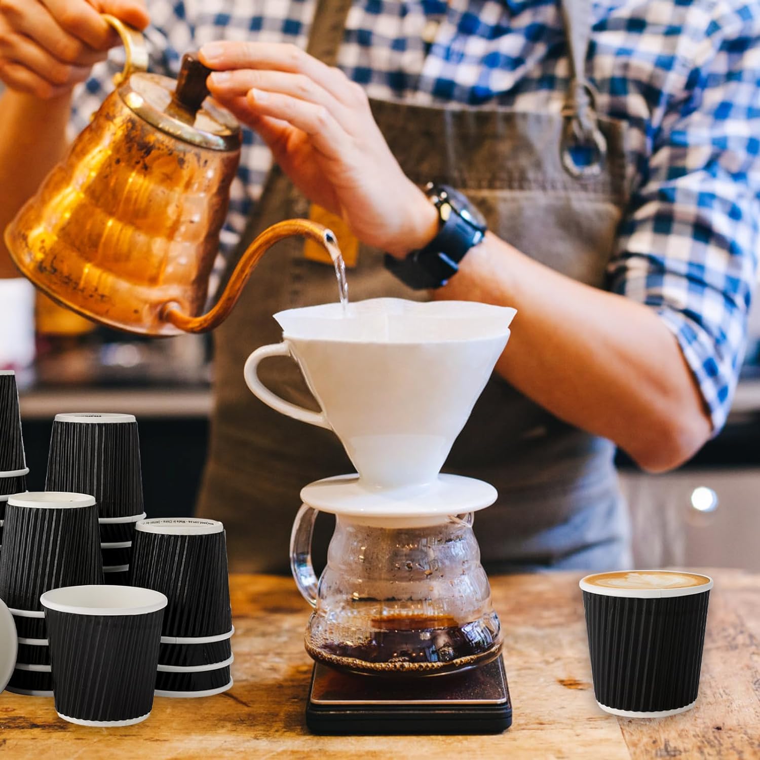 200 Pcs 4oz Paper Espresso Cups Ripple Wall Hot Cups For Coffee Disposable Coffee Cup Paper Hot/Cold Drinking Cups for Party, Picnic, Travel and Events (Black)