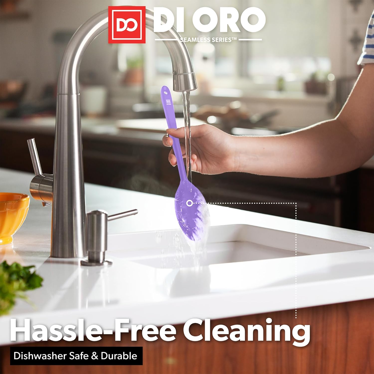 - ONLY THE BEST – By popular demand, we have added a 2-Piece Silicone Spoon Set to our Award-Winning Seamless Series line of kitchen utensils. The DI ORO Seamless Series Slotted and Solid Spoons are made with food grade, BPA Free, and LFGB Certified Silicone. Built to withstand the heat, these essential kitchen tools are heat-resistant up to 600°F, which means you will never melt your favorite spoons.