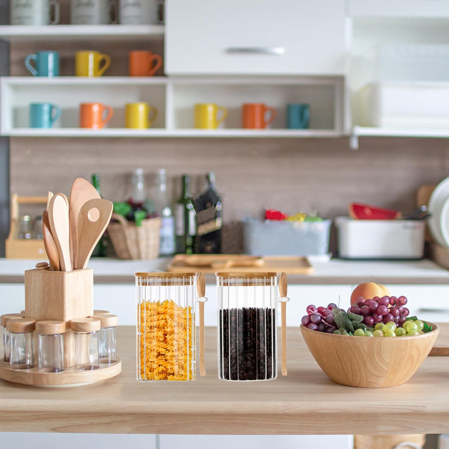 25 OZ Airtight Glass Jars with Bamboo Spoons Lids Overnight Oats Container Decorative Coffee Bar Food Storage Jar Cereal Nuts Salts Coffee Tea Flour Sugar Container Spice Jars (2Pack)