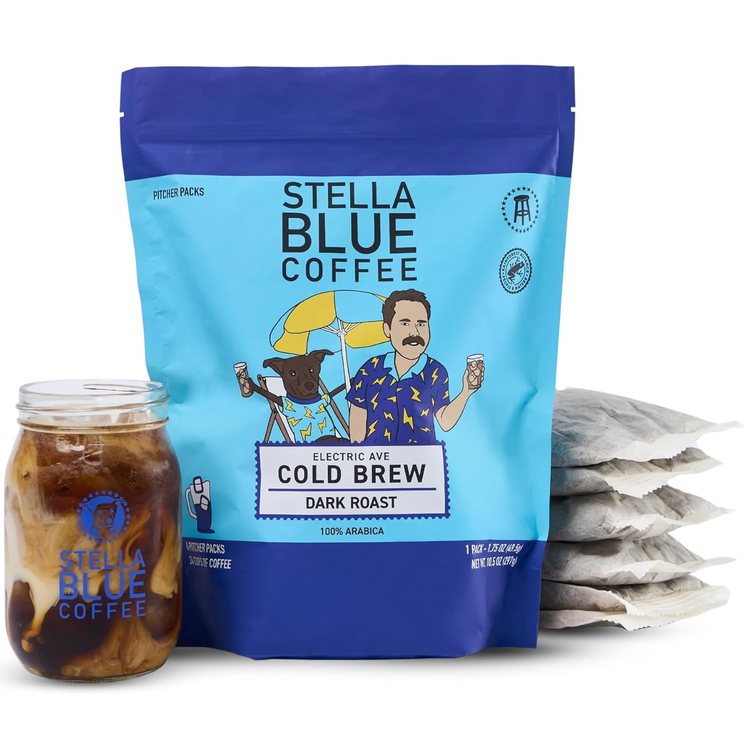 STELLA BLUE Fresh Cold Brew Coffee | Electric Avenue Blend | 100% Arabica Dark Roast | Bold Toffee and Dark Chocolate with Smoky Notes | 6 Brew Packets for Cold Brew | Makes 24 Smooth Bold Cups