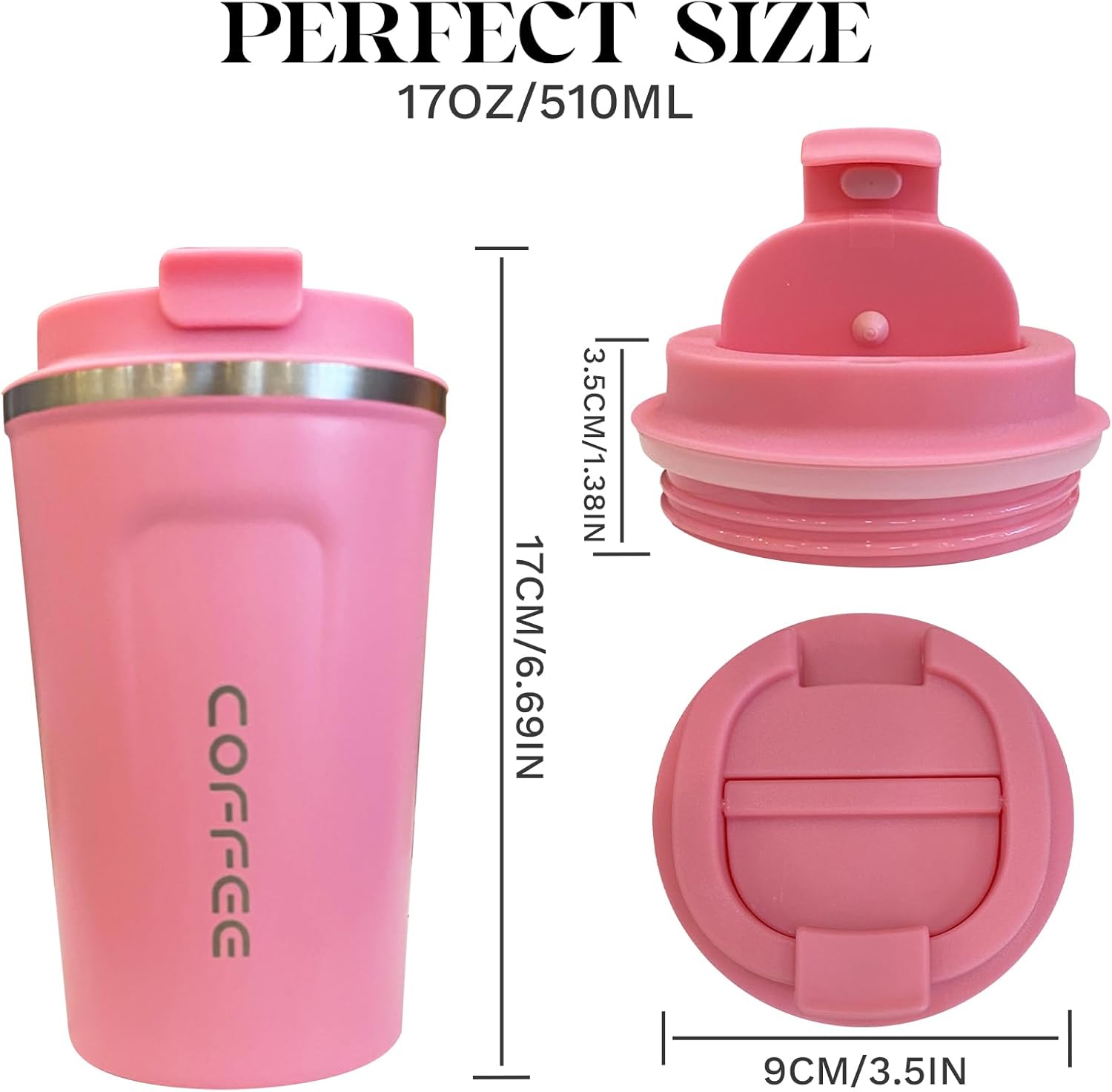 YINBAOGE Insulated Travel Coffee Mug Spill Proof Leak Proof Pobtable To Go Camping Stainless Steel Coffee Tumbler Reusable Coffee Cups with Lids Thermos for Hot and Cold Drink (2nd-Pink, 17 OZ)