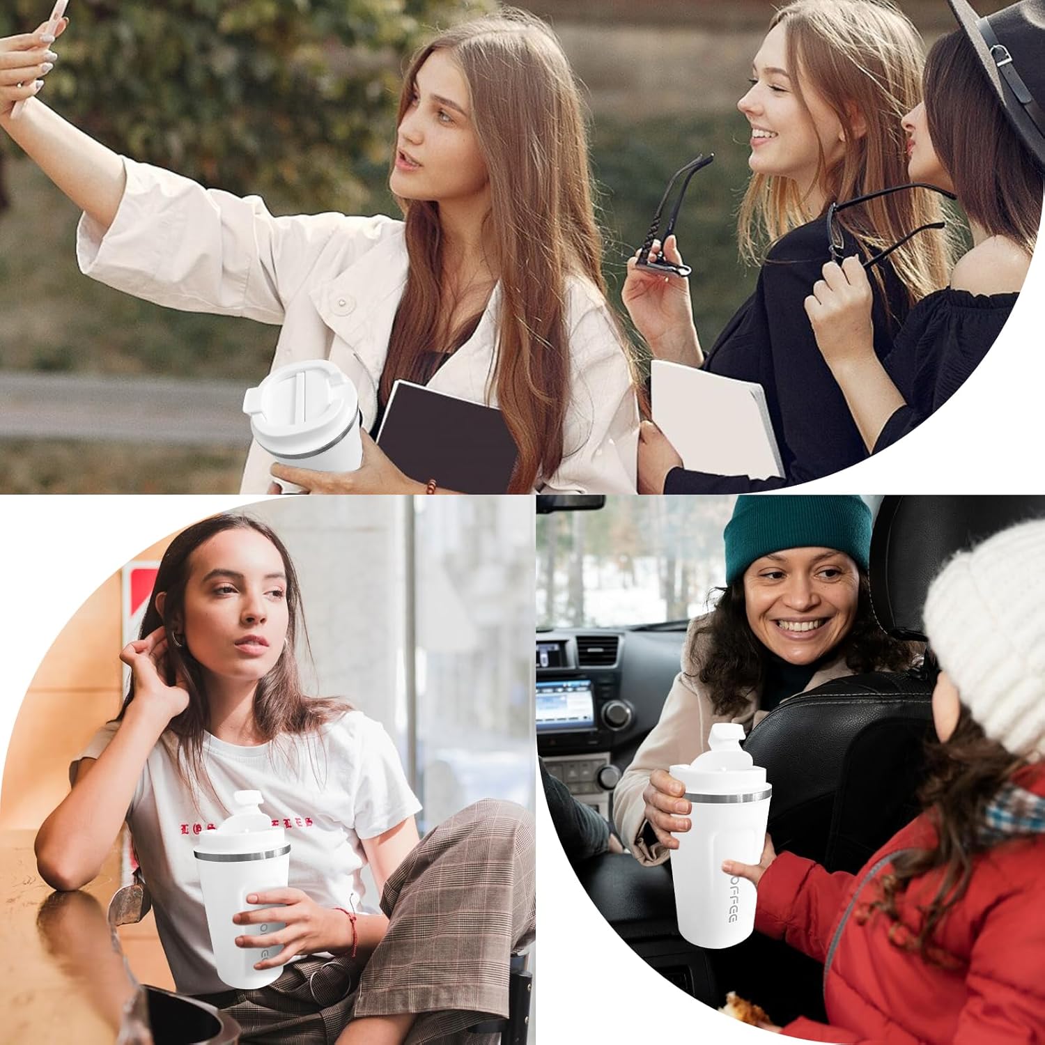 YINBAOGE Insulated Travel Coffee Mug Spill Proof Leak Proof Pobtable To Go Camping Stainless Steel Coffee Tumbler Reusable Coffee Cups with Lids Thermos for Hot and Cold Drink (2nd-White, 12 OZ)