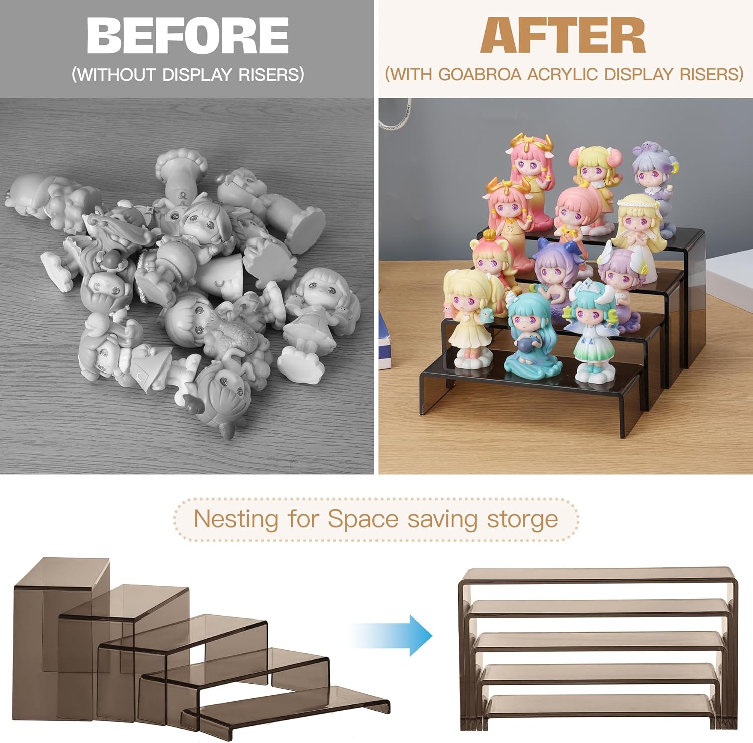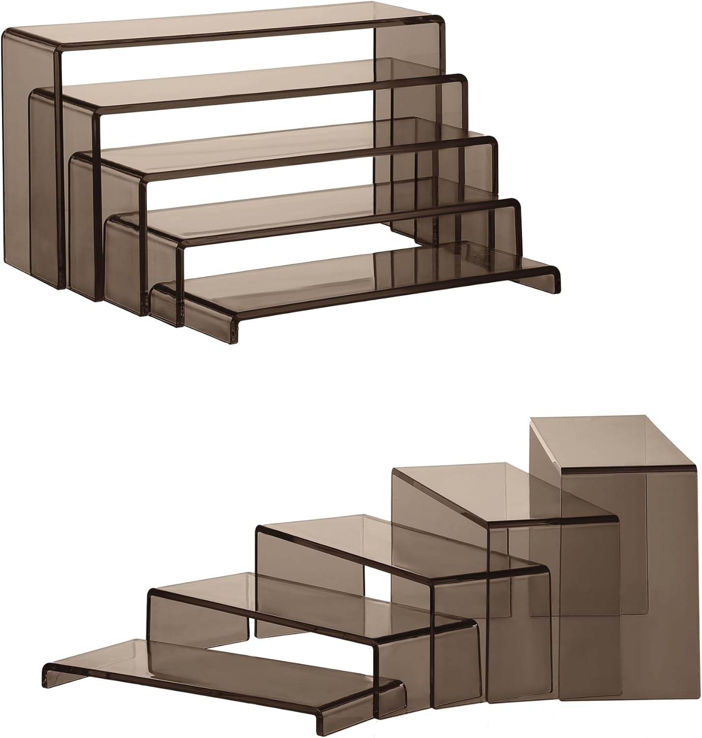 - Multiple Display Layers: With five different sizes(9.2x3x5in, 8.8x3x3.9in, 8.4x3x2.8in, 8x3x1.7in, 7.6x3x0.6in) Different sizes and dimensions of risers display stands can meet your various needs; Each with two pieces, you'll have ample display layers to showcase your items; Expand your display with these acrylic display stands, giving you plenty of options for showcasing your products