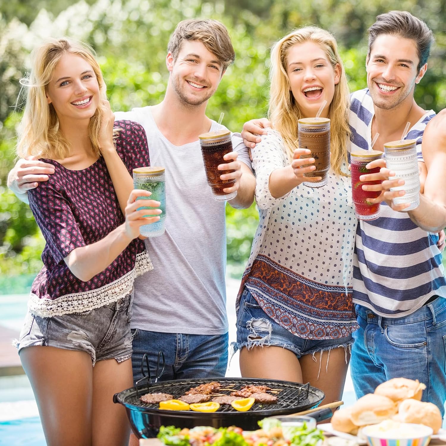 - 【What You Will Get】 4PCS 16OZ Embossed Glass Cups with Bamboo Lids, 4PCS reusable glass straws, 2PC cleaning brushes. ---The cups are dishwasher safe and microwave safe, very practical combination set, take it home without hesitation