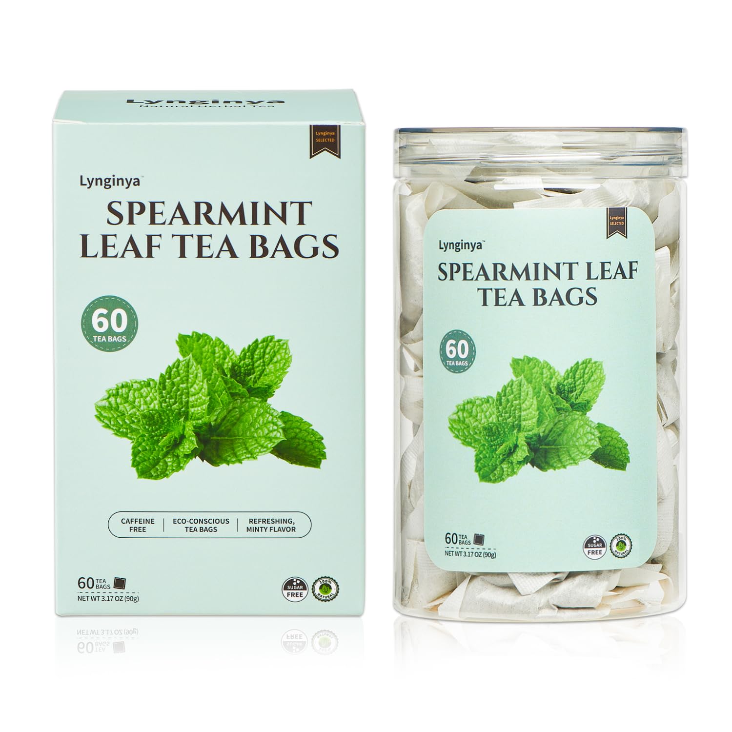 Lynginya Spearmint Tea, 60 Tea Bags - Premium Spearmint Leaves - Natural Herbal Tea - Refreshing & Minty - No Sugar & No Caffeine