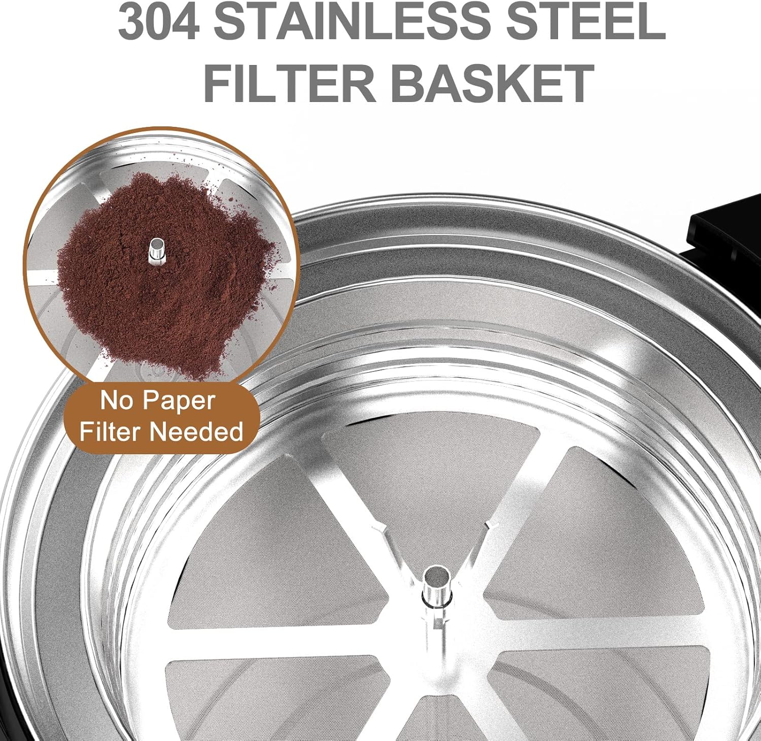 - STAINLESS STEEL FILTER: No paper filter needed, ready for duty filter basket is durable and easy to clean. Wetting the filter before filling with coffee grounds can prevent grounds from slipping through.