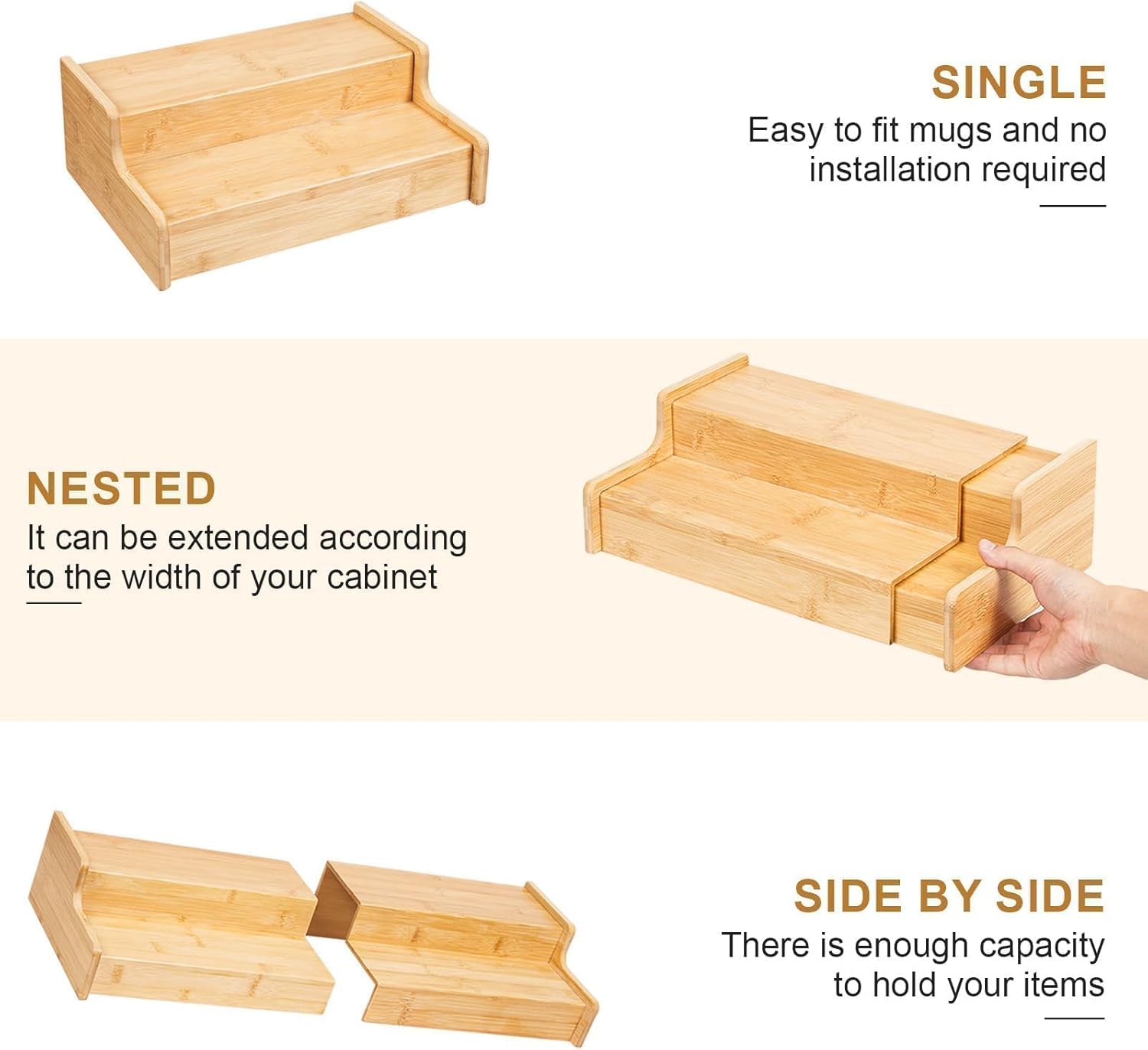 - Space Saving: Multiple ways to use, can be nested, single or side by side, and our mug holder is with two tiers, perfect fit for your cabinet space, can effectively save space, easy to organize your home items, size 12.4~23.94L * 8.86W * 4.53H inches.
