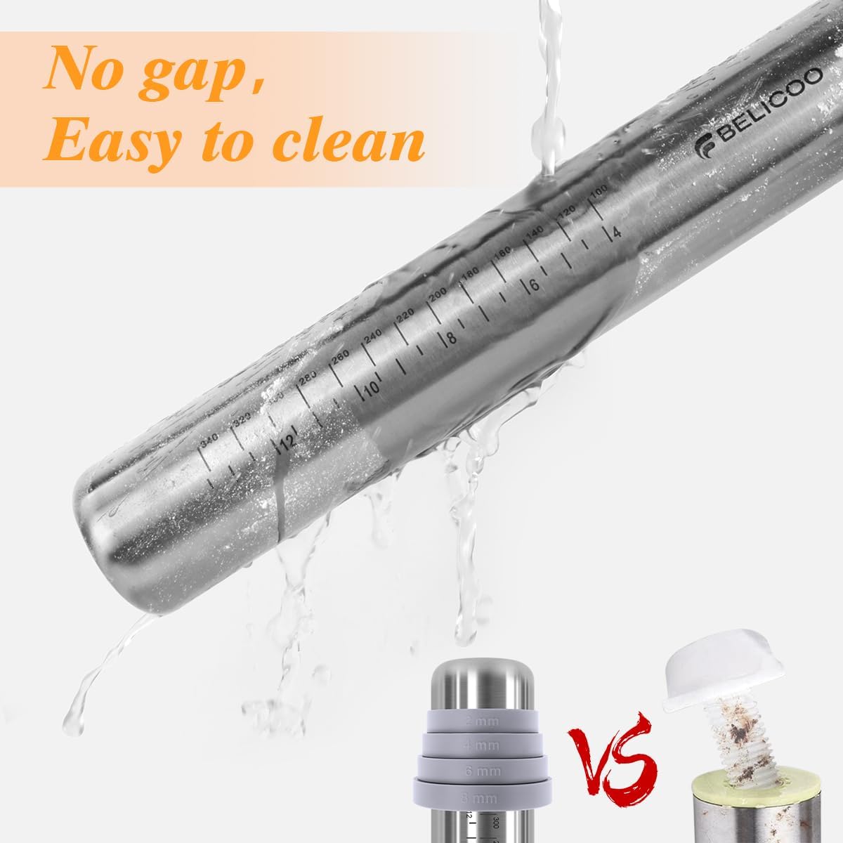 - 【Safe and Easy to Clean】The surface of the rolling pin is smooth and seamless, and the dough will not remain or stick. It can be cleaned with water or in a dishwasher. Food grade 430 stainless steel material is less prone to rusting. Compared to wooden rolling pins, stainless steel is less prone to mold and damage, making it safer and healthier.