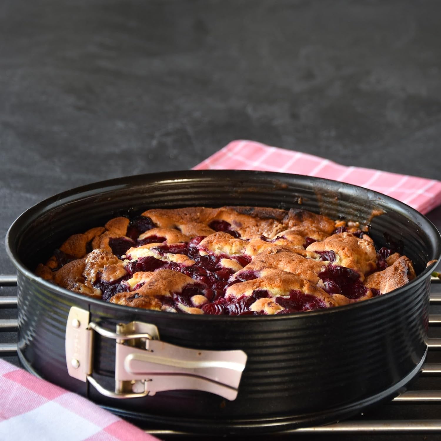 - Easy to Use: Before pouring the batter, lightly grease the cake baking pan or use parchment paper for added convenience. Securely latch the sides of the pan together, ensuring a tight seal, and then bake the cake according to your recipe's instructions. Once baked, release the latch and remove the sides of the pan, leaving the cake on the removable bottom.