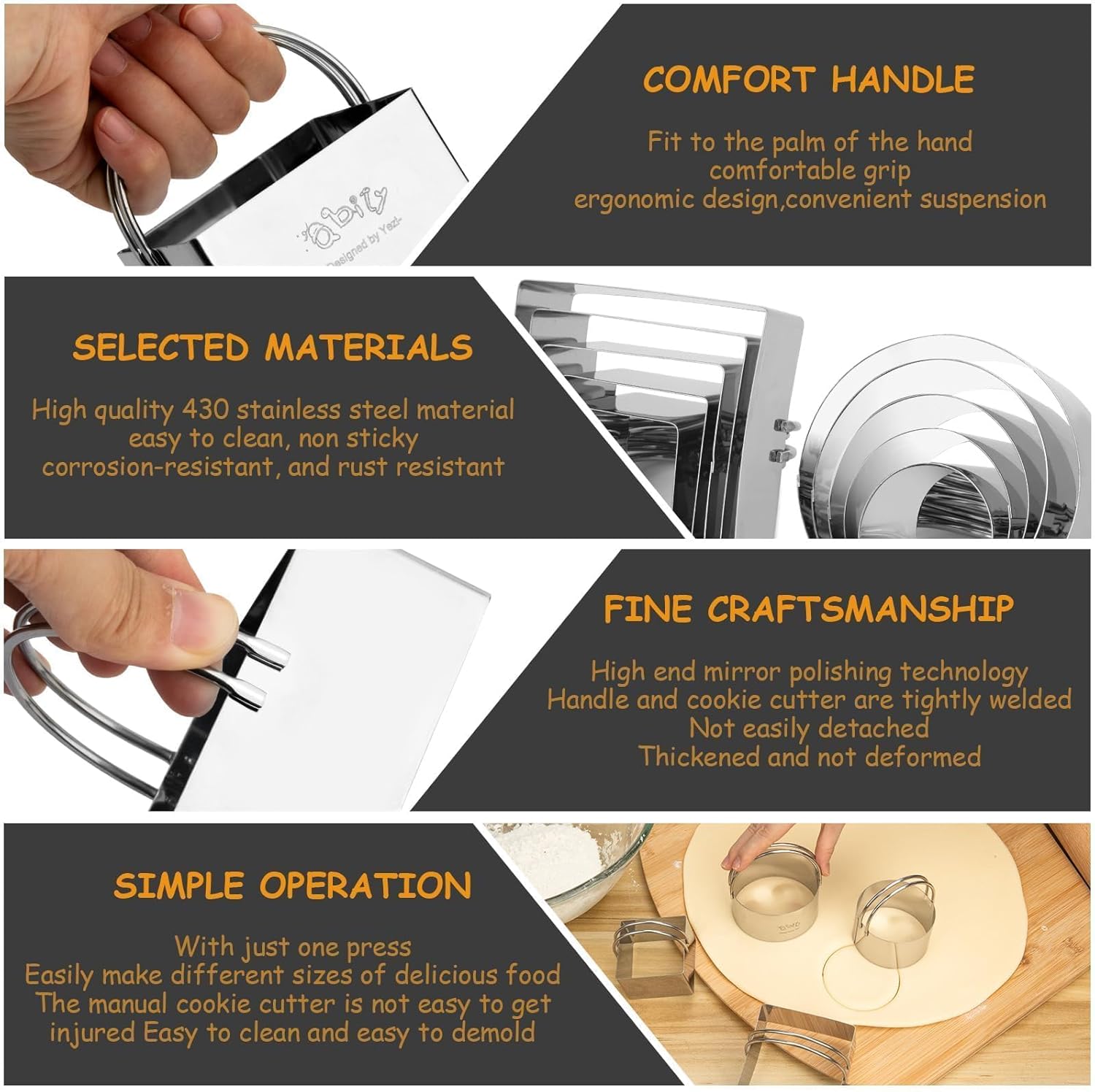 - ★ Excellent Quality: The cookie cutter is made of food grade stainless steel material, which is non-toxic, rust proof, corrosion-resistant, and deformation resistant. It can be hand washed and dishwasher washed.
