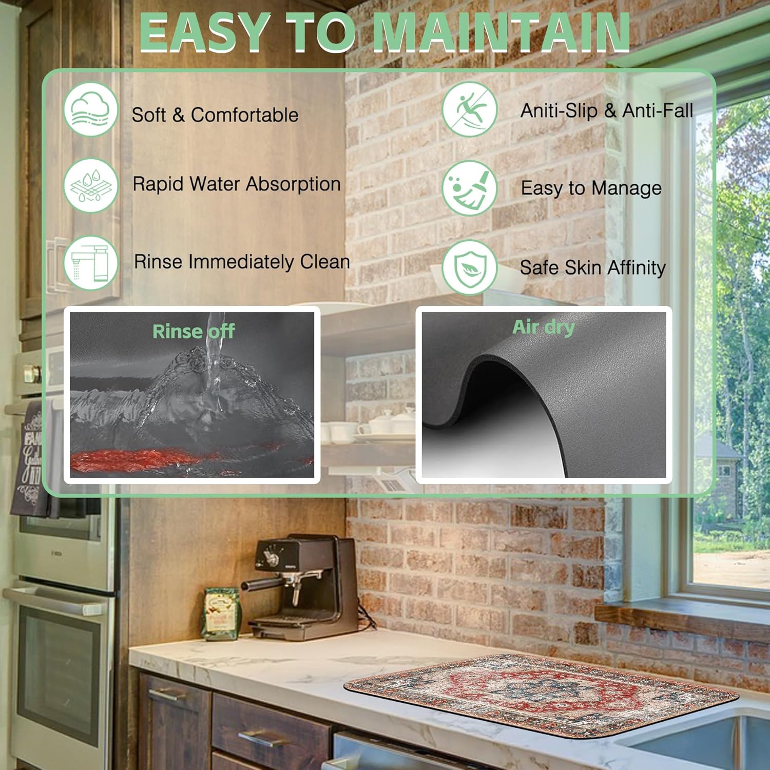 Dish Drying Mat Persian Style Textile Rug Texture Dish Drying Pad,16"X24"Bsorbent Coffee Mat for Sink Dishes or Under Rack Kitchen Counter Accessories Absorbent Hide Stain Drying Mat
