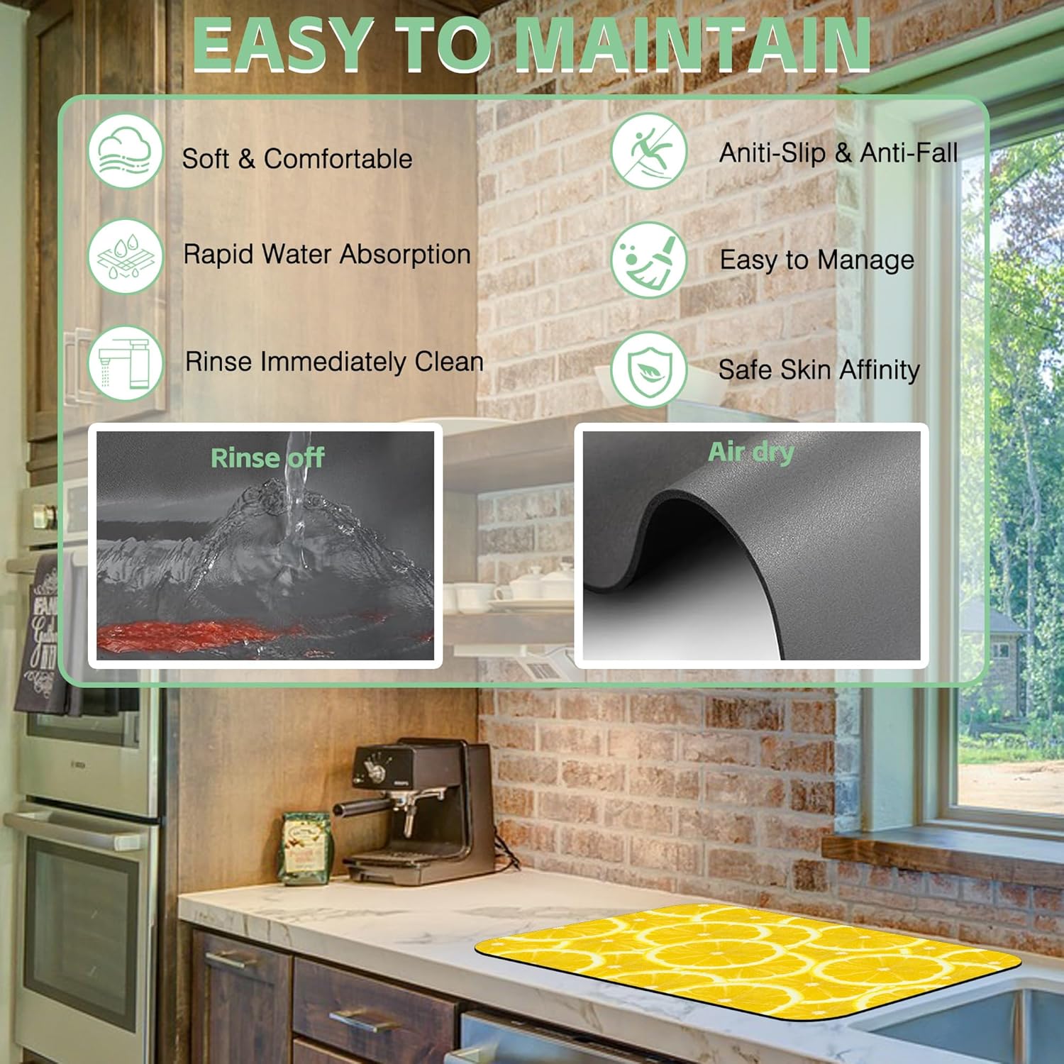 - 【Wide Application】It is not just a coffee bar mat, but also a fast drying kitchen drying mat, suitable for kitchen countertops, coffee bars, dish drain racks, perfect for air drying dishes, glasses, silverware, pots, pans. It can also be used as a pet feeding mat, door mat, bar mat and bathroom drying mat.