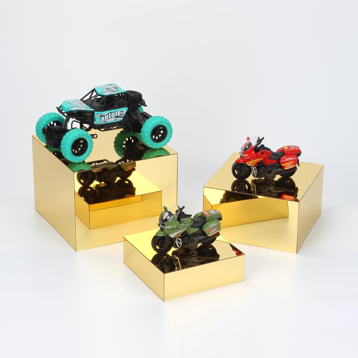 3-Piece Nesting Risers - Mirror Gold Acrylic Display Stands for Catering, Dessert, Jewelry & Party