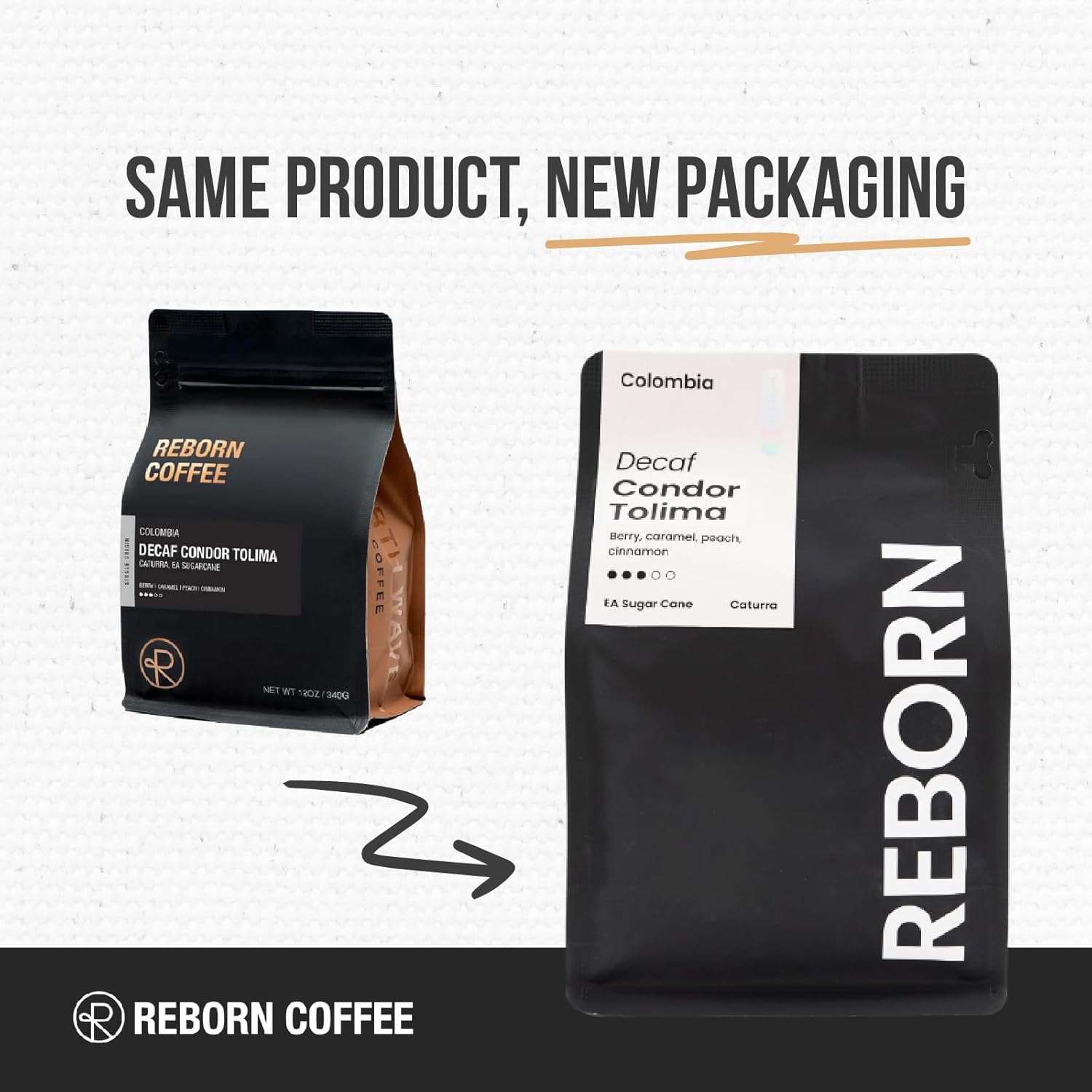 Reborn Coffee Specialty Whole Bean Decaf Coffee, Medium Roast, 12 Ounce, Colombia Condor Tolima, Flavor Notes of Berry, Caramel, Peach, and Cinnamon