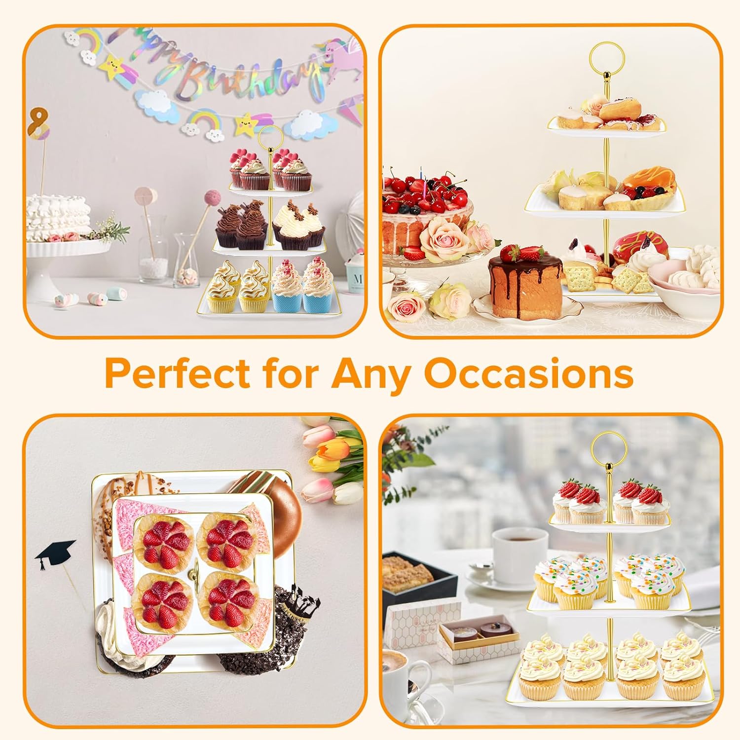 - Perfect for Every Occasion: Versatile and practical, our tiered tray stand is perfect for family gatherings, weddings, birthday parties, and more. Ideal for displaying cupcakes, cookies, candies, donuts and more