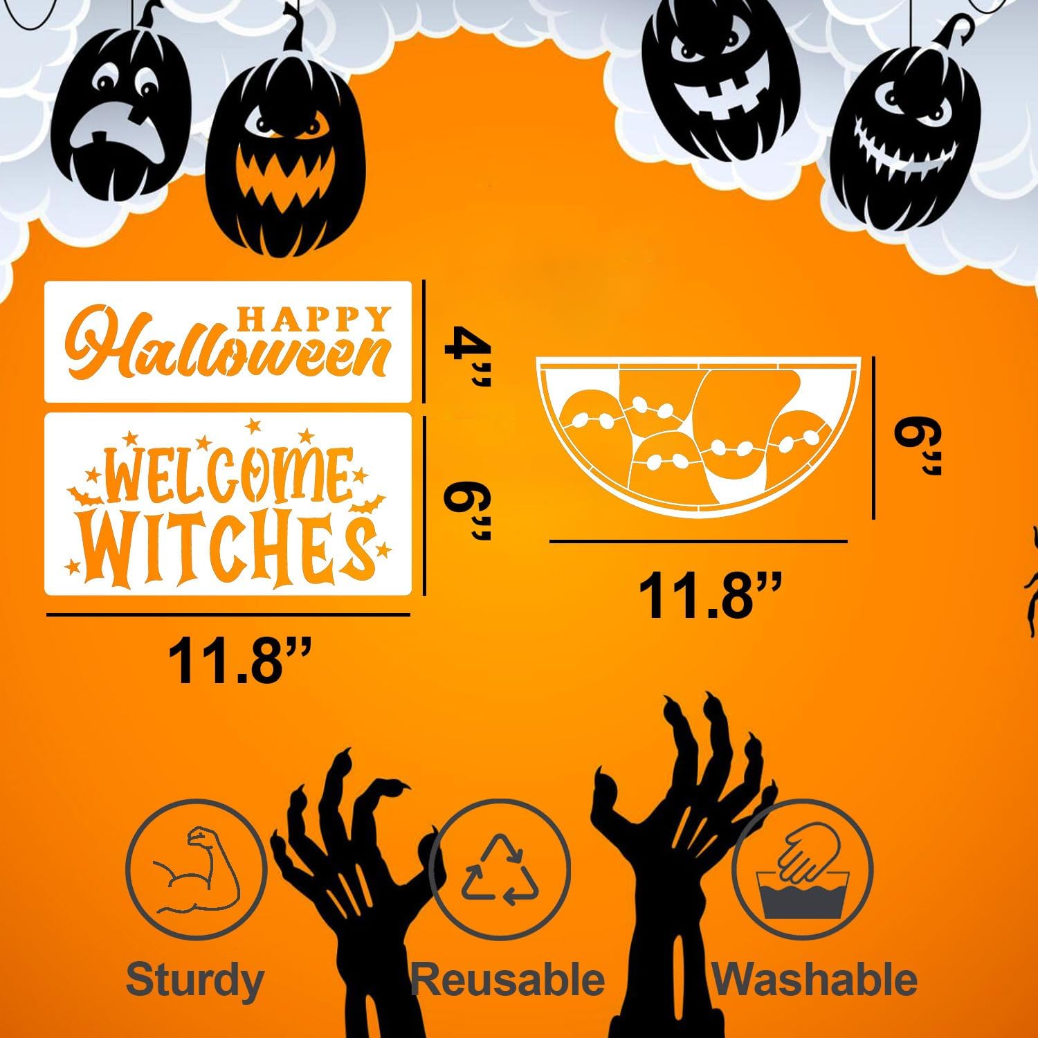 - Package Included: 13pcs reusable Halloween Stencils for Painting on Wood are 11.8x11.8inch,11.8x4inch and 11.8x6inch.You can decorate pillow, round wood wreath,door hanger.