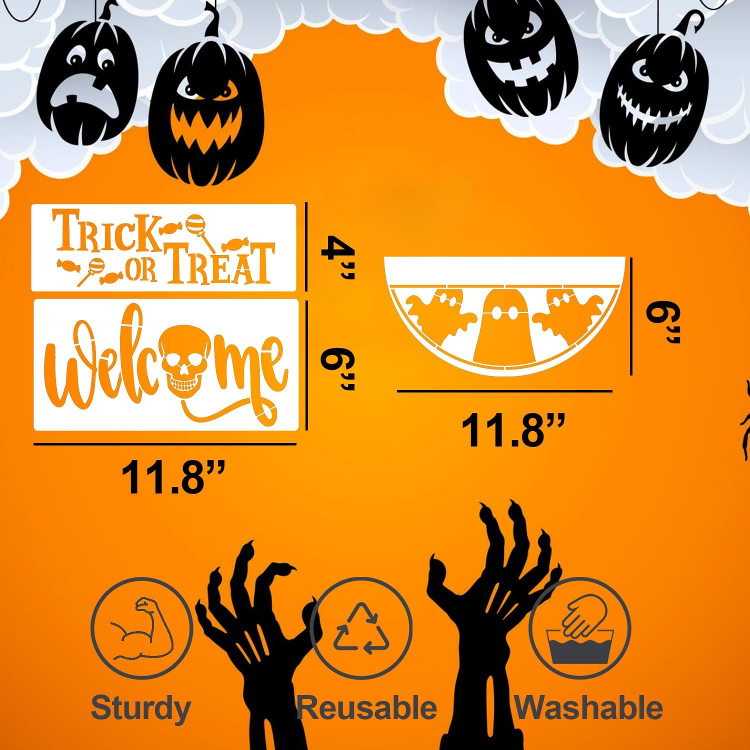 - Durable&Flexible Material:Our Halloween stencils for front door adopt superior PET materials with 0.25mm thickness,sturdier than other stencils with 0.18mm thickness. Long-time use and laser cut. You can wash the Halloween stencil after painting and it can be used for many times.