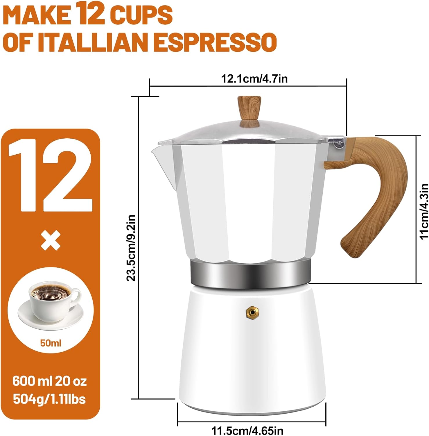 12 Cup Aluminum Espresso Stovetop Moka Pot Express Coffee Maker Percolator Italian Classic Mocha Coffee Machine for Italian and Cuban Cafe Brewing for Home & Camping 600ml 20oz