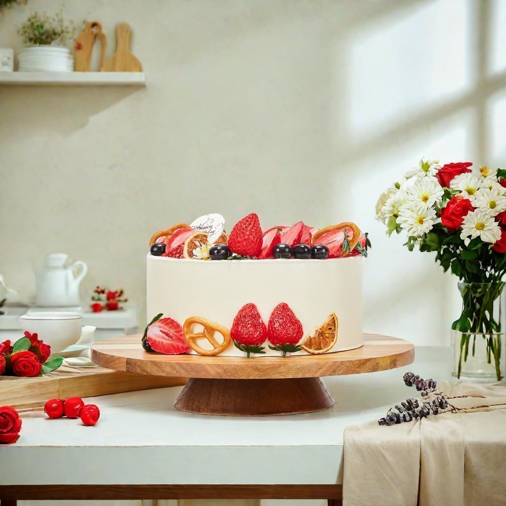 - Natural Wood: Crafted from high-quality acacia wood, each cake stand features a one-of-a-kind natural wood grain pattern! So while your cake turntable not be exactly like the images, it will be beautiful and a completely food safe way to decorate your food
