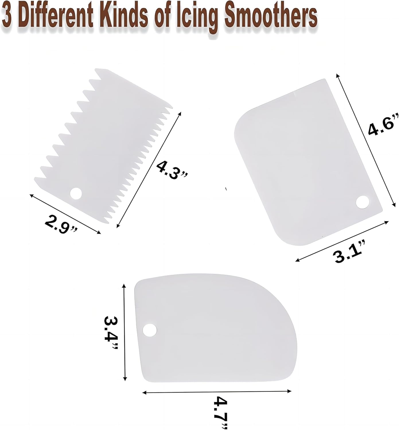 - Cake Decorating Supplies:1 Acacia wood cake turntable, 2 plastic icing spatulas and 3 plastic comb Icing Smoothers would allow you to invent all types of patterns on cakes, or cupcakes.(The comb has blue plastic film, please remove it before use)