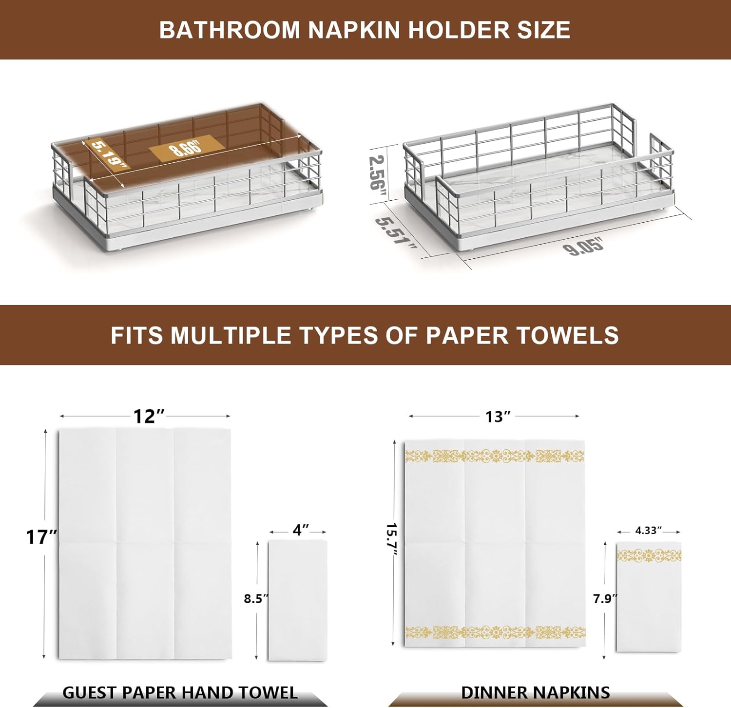 - Quite Versatile: This guest towel holder hold paper towels in the guest bathroom for hand drying; hold paper bath towels for your powder room, easy to retrieve towel when needed; It can also be used as a lunch napkin holder, looking very nice on the dining table
