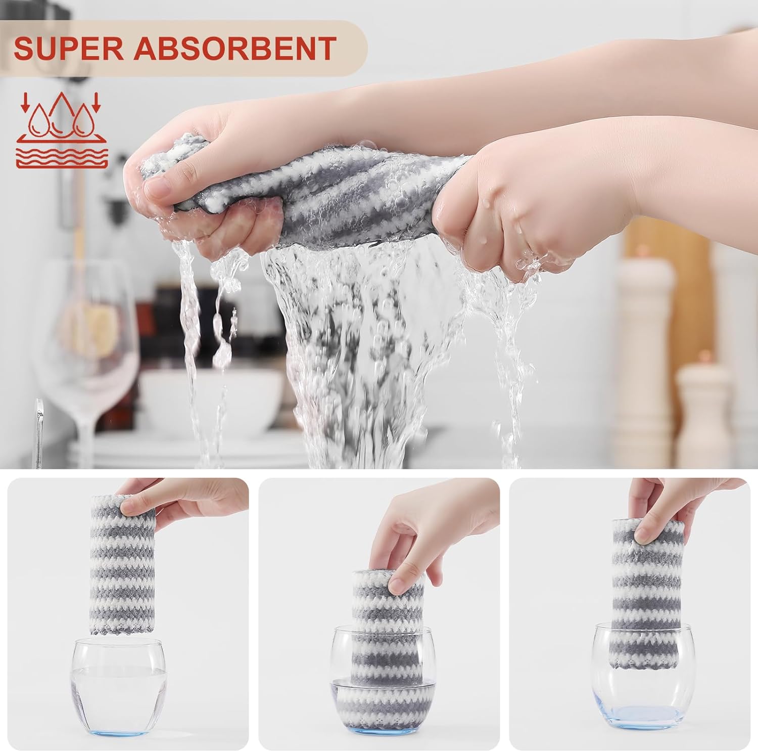 - Super Soft and Absorbent: Experience the luxurious softness of our dish towels. They are crafted with high-quality materials which feels soft and won't scratch your hands or any surfaces. Strong water absorption, easily absorb liquid and overflow, make the surface clean and dry.