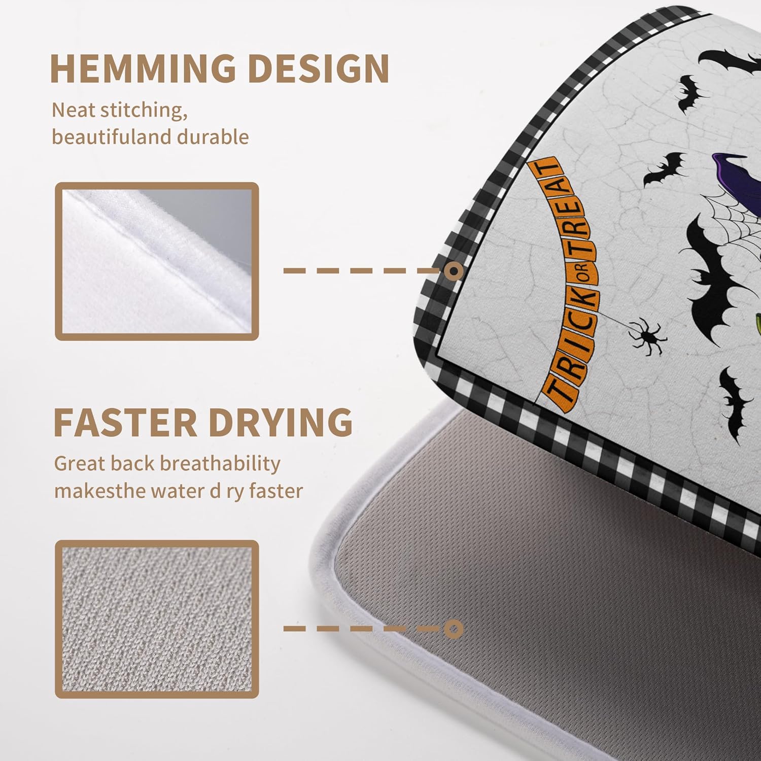 - [Quick Absorption]: Made of absorbent material, our trick or treat dish drying pad for kitchen absorbs water stains quickly, keeping your table top dry and clean, avoiding water stains and leaks, providing you with a pleasant and dry dining or working experience.