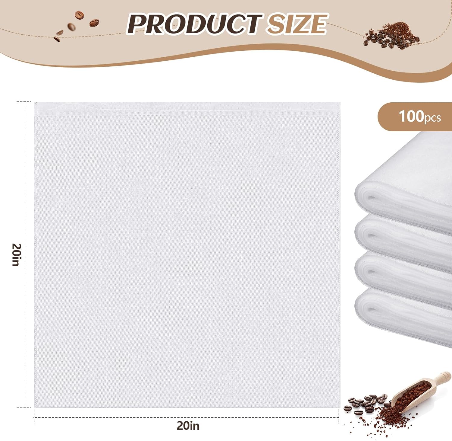 100 Pcs 20" x 20" Commercial Home Cold Brew Coffee Filter Bags with Drawstring, Disposable for Commercial Home Cold Brew Coffee Makers
