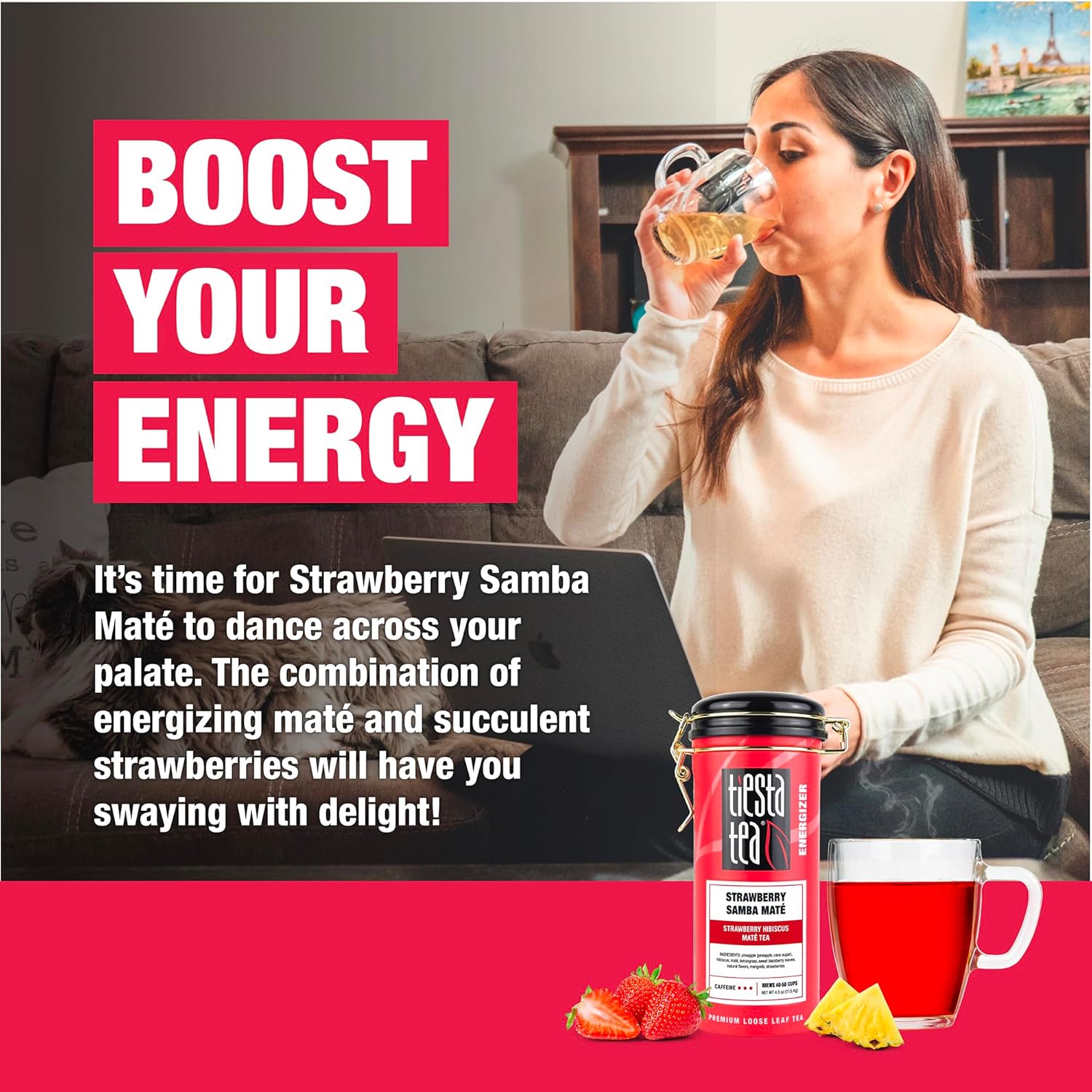 - REVITALIZE YOUR DAY WITH STRAWBERRY HIBISCUS MATÉ TEA: Experience the vibrant dance of flavors with Tiesta Tea's Strawberry Hibiscus Maté Tea. This energizing blend combines the invigorating qualities of maté with the luscious taste of strawberries, creating a refreshing and revitalizing beverage that will keep you moving throughout your day.
