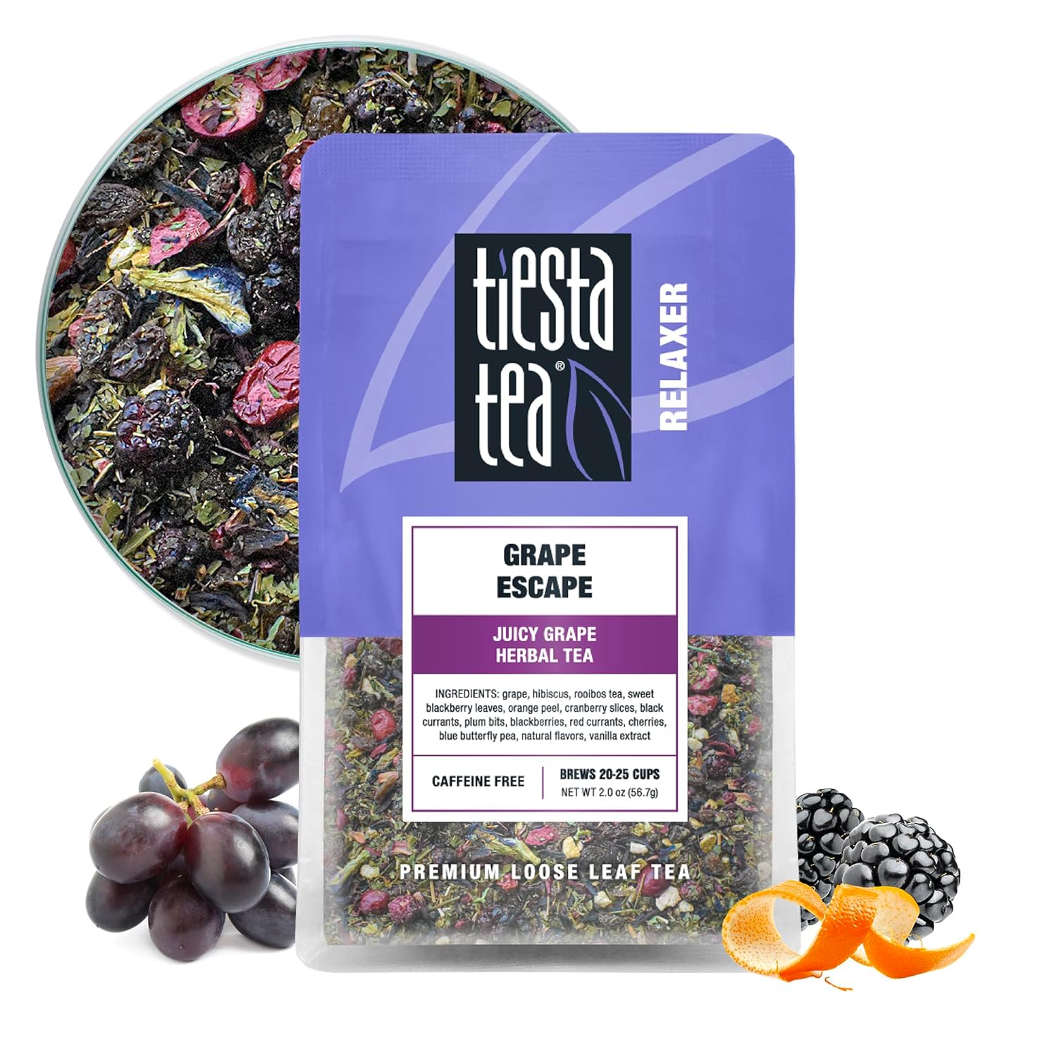 Tiesta Tea - Grape Escape, Loose Leaf, Juicy Grape Herbal Tea, Non-Caffeinated Fruit Blend, Makes Hot or Iced Up to 25 Cups, 2oz Resealable Pouch