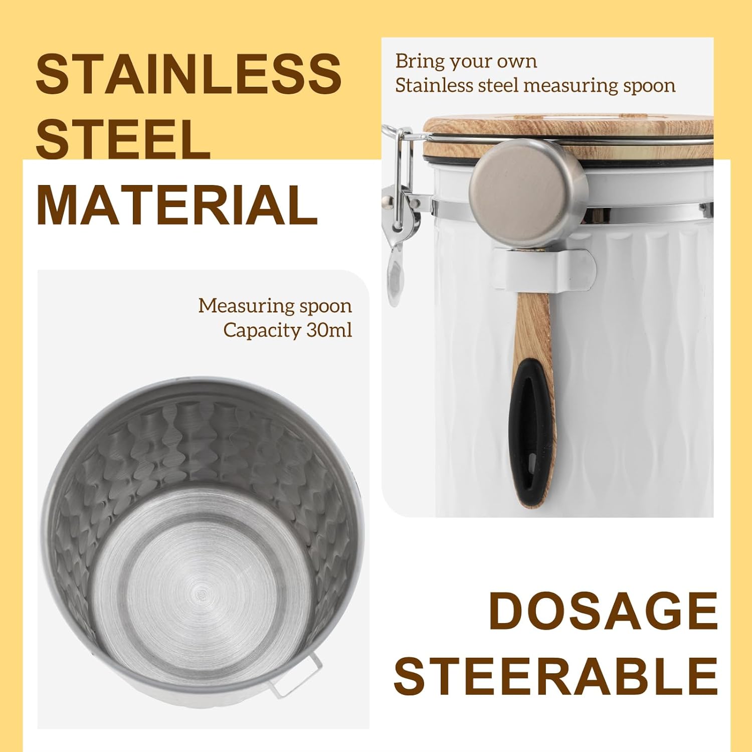 - 【304 Stainless Steel】: As a coffee lover, you must never compromise on the material and quality of your coffee container. Containers are made of thick, high-quality stainless steel to create a comfortable environment for coffee beans.