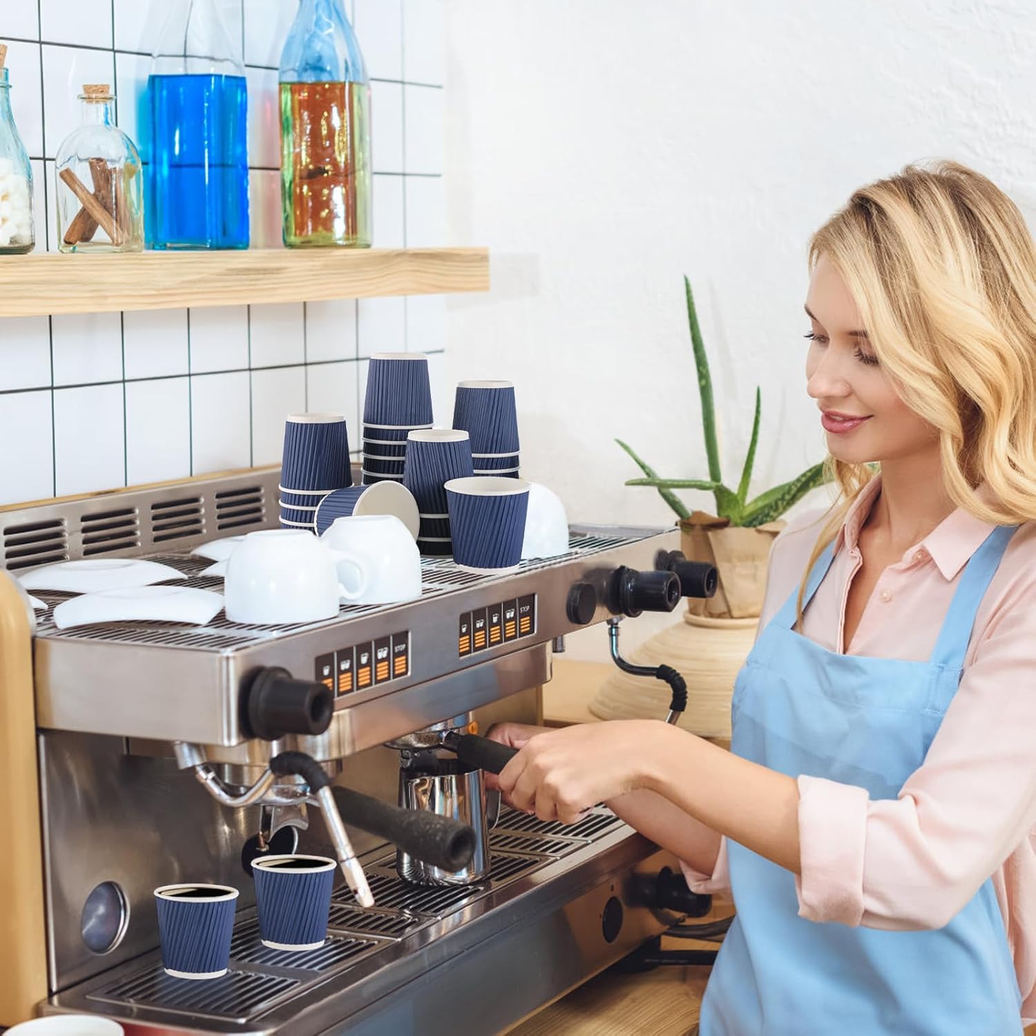200 Pcs 4oz Paper Espresso Cups Ripple Wall Hot Cups For Coffee Disposable Coffee Cup Paper Hot/Cold Drinking Cups for Party, Picnic, Travel and Events (Blue)