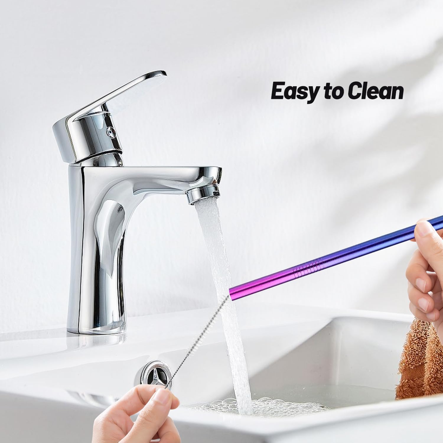 - 1 FREE SCRUB BRUSH & EASY TO CLEAN: Come with 1 special scrub brush, with this banister brush, you can clean your stainless steel straws more easily and never worry about hurting your drinking steel straws. You can also hang the brush easily by its annulus at the end. To clean the stainless steel straws, you just need to hold the handle of the brush and let nylon bristles come into the stainless straws, the brush is of the perfect size for these drinking straws.