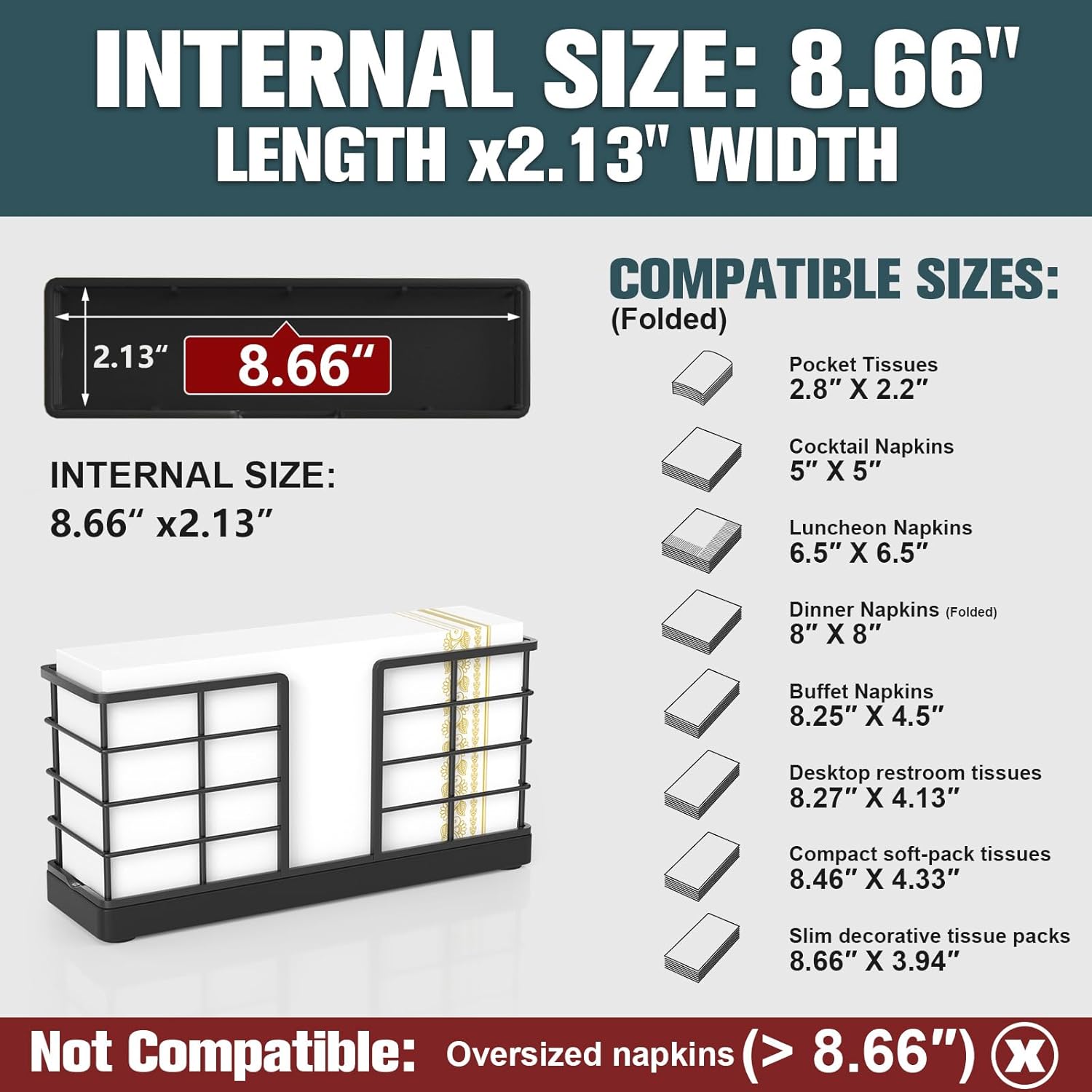 - Sized to Fit: The inner dimensions of the Bathroom Napkin Holder are 8.66" (length) x 2.13" (width), making it suitable for most standard guest towels and paper rolls. Napkins are stored vertically inside the holder, maximizing space and keeping them neat. It fits perfectly on the back of the toilet and is practical for year-round use