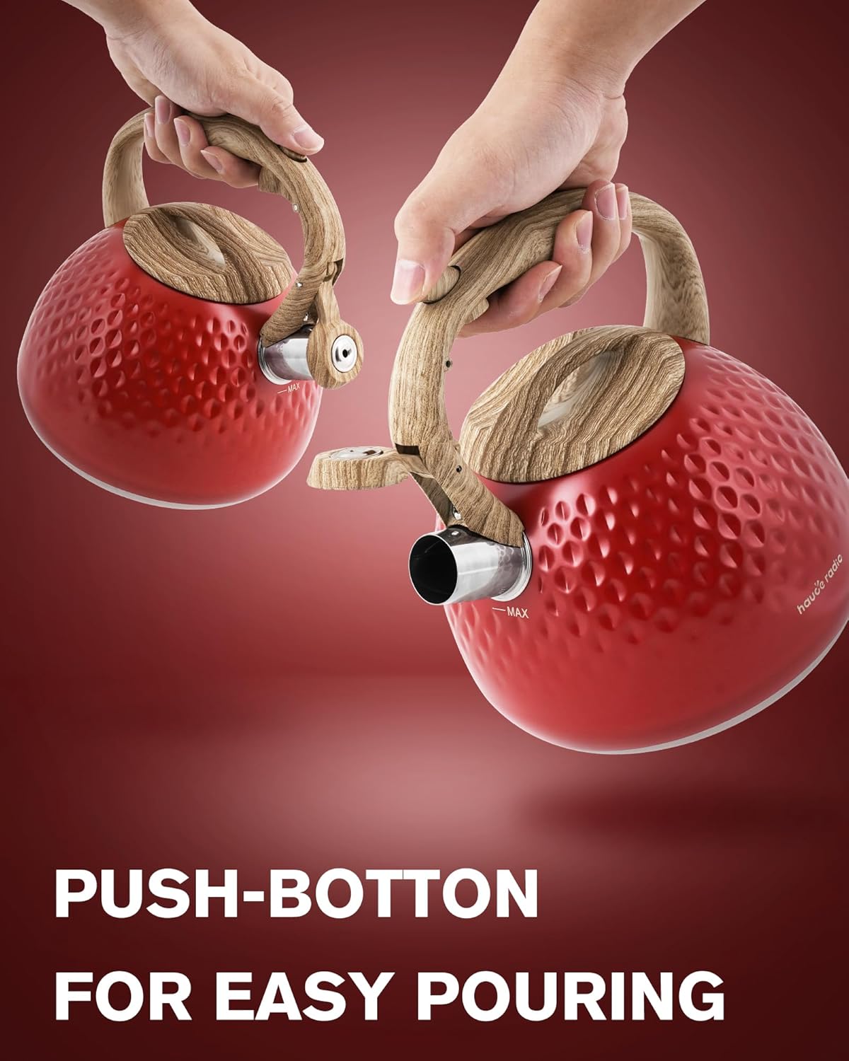 - Anti-Hot Teapots for stove top : The silicone coated handle is effectively insulated, the ergonomic shape and design adds comfort for pouring and filling, and there is a simple button on the handle so you can easily turn the nozzle on and off