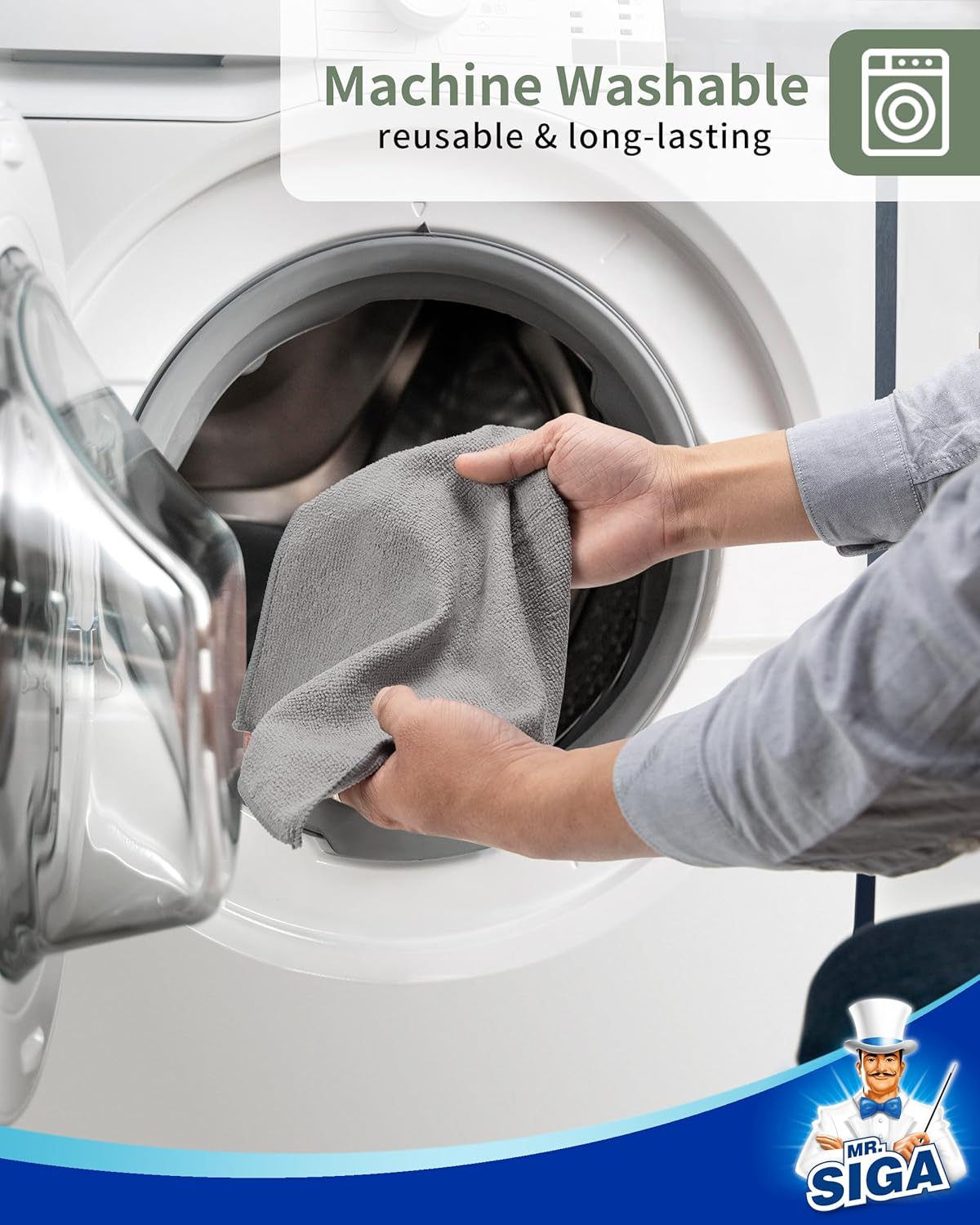 MR.SIGA Microfiber Cleaning Cloth, All-Purpose Microfiber Towels, Streak Free Cleaning Rags, Pack of 15, Gray, Size 30 x 30 cm(11.8 x 11.8 inch)