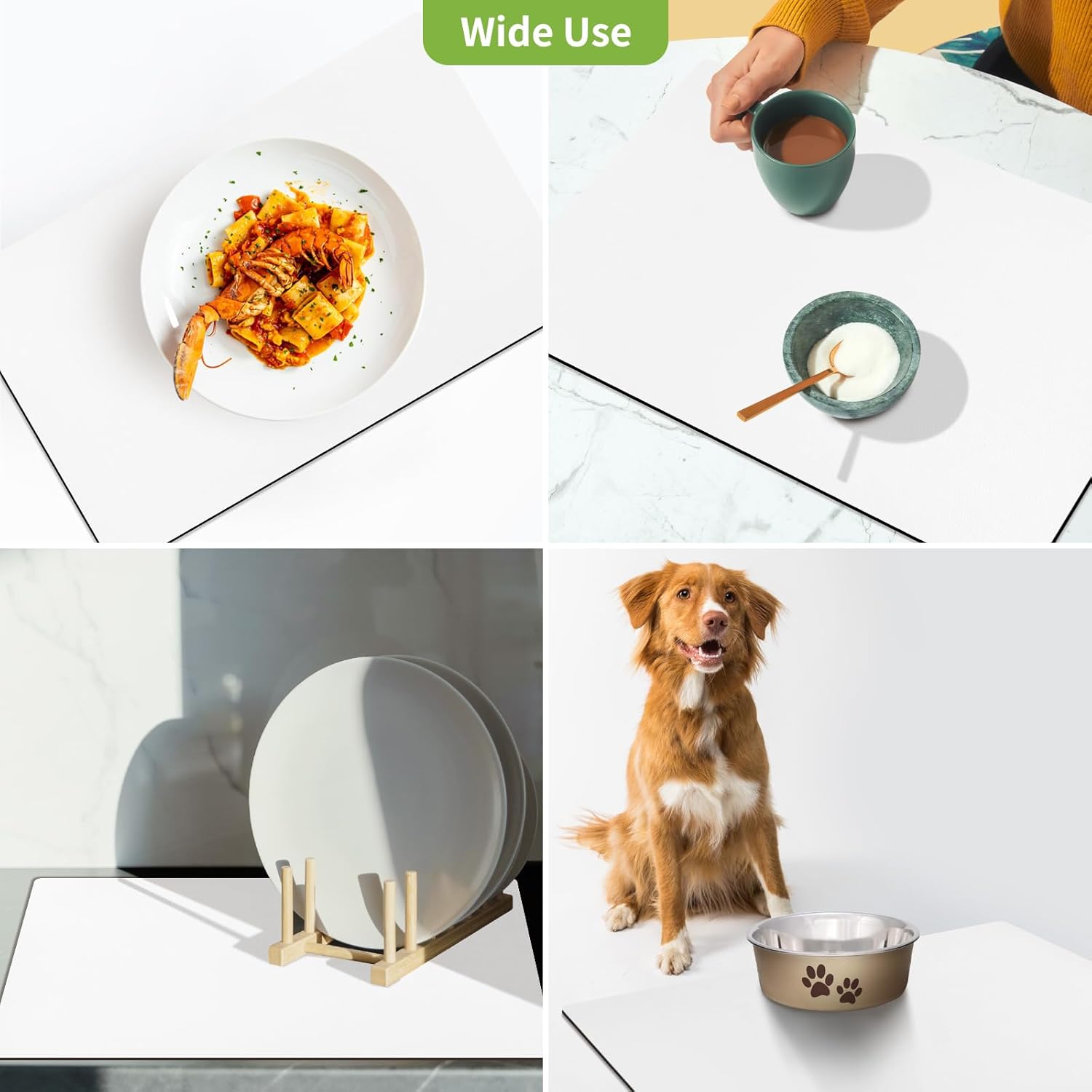 - 【Effortless Maintenance】 Designed for busy households, this mat is not only easy to wipe clean but also rinseable, machine washable, and even dishwasher safe. Whether you use it as a drying mat for dishes or a coffee bar mat, it’s built for hassle-free upkeep and long-lasting durability.