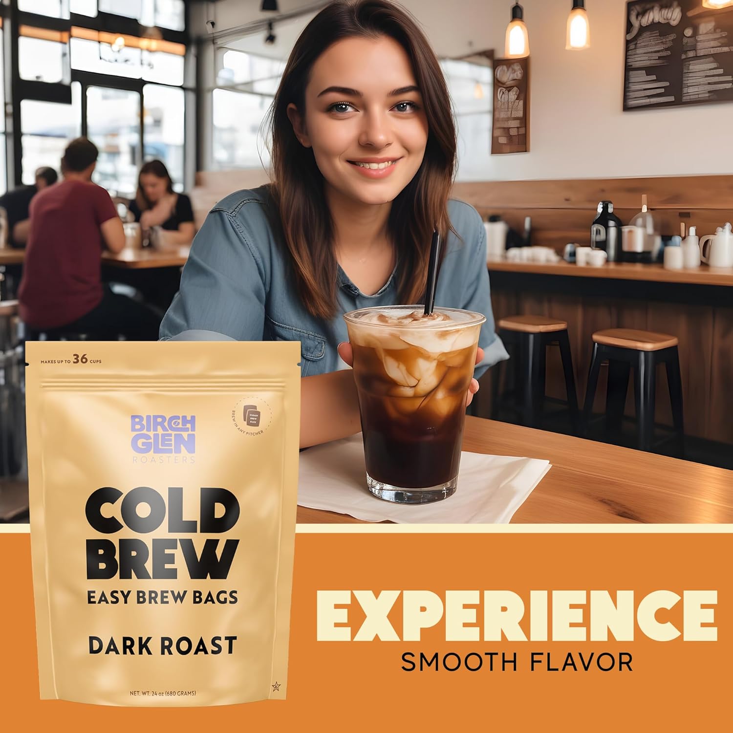 Birch Glen Roasters Cold Brew Coffee Bags - 12 Pack of Coarse Ground Coffee Filter Pitcher Packs for Easy Brewing - 100% Arabica - Yields 6 Pitchers - Medium Roast