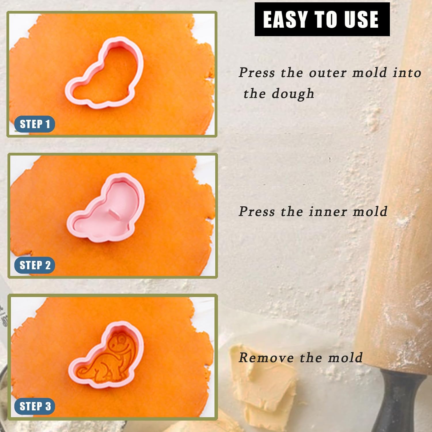 8 Pcs Dinosaur Cookie Cutters Set Baking Molds 3D Dinosaur Press type Cookie Cutter for Baking, Fondant, Cheese, and Pastries