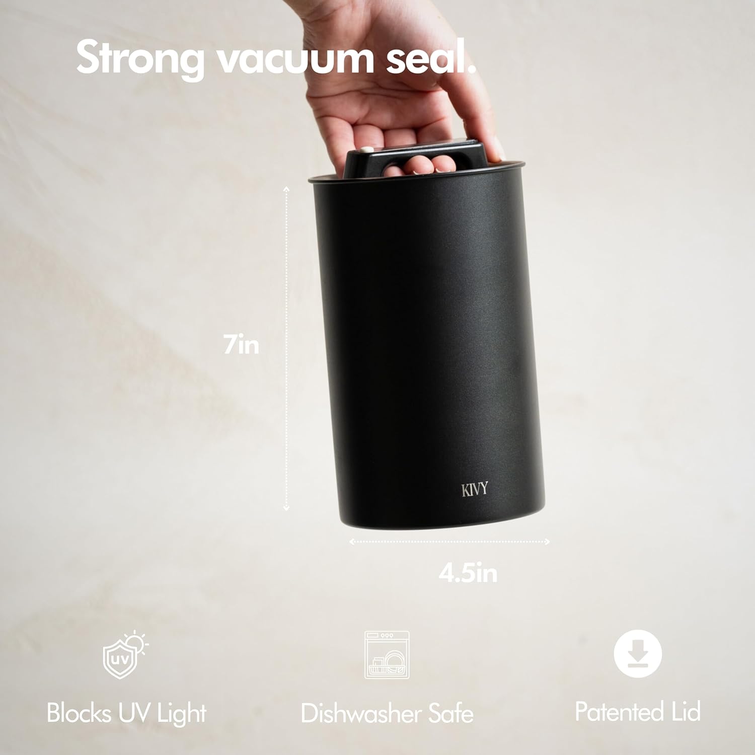 KIVY Vacuum Coffee Canister - Push Lid Preserves Coffee Aroma & Oil - Stainless Steel Airtight Coffee Canister - Removes Excess Air