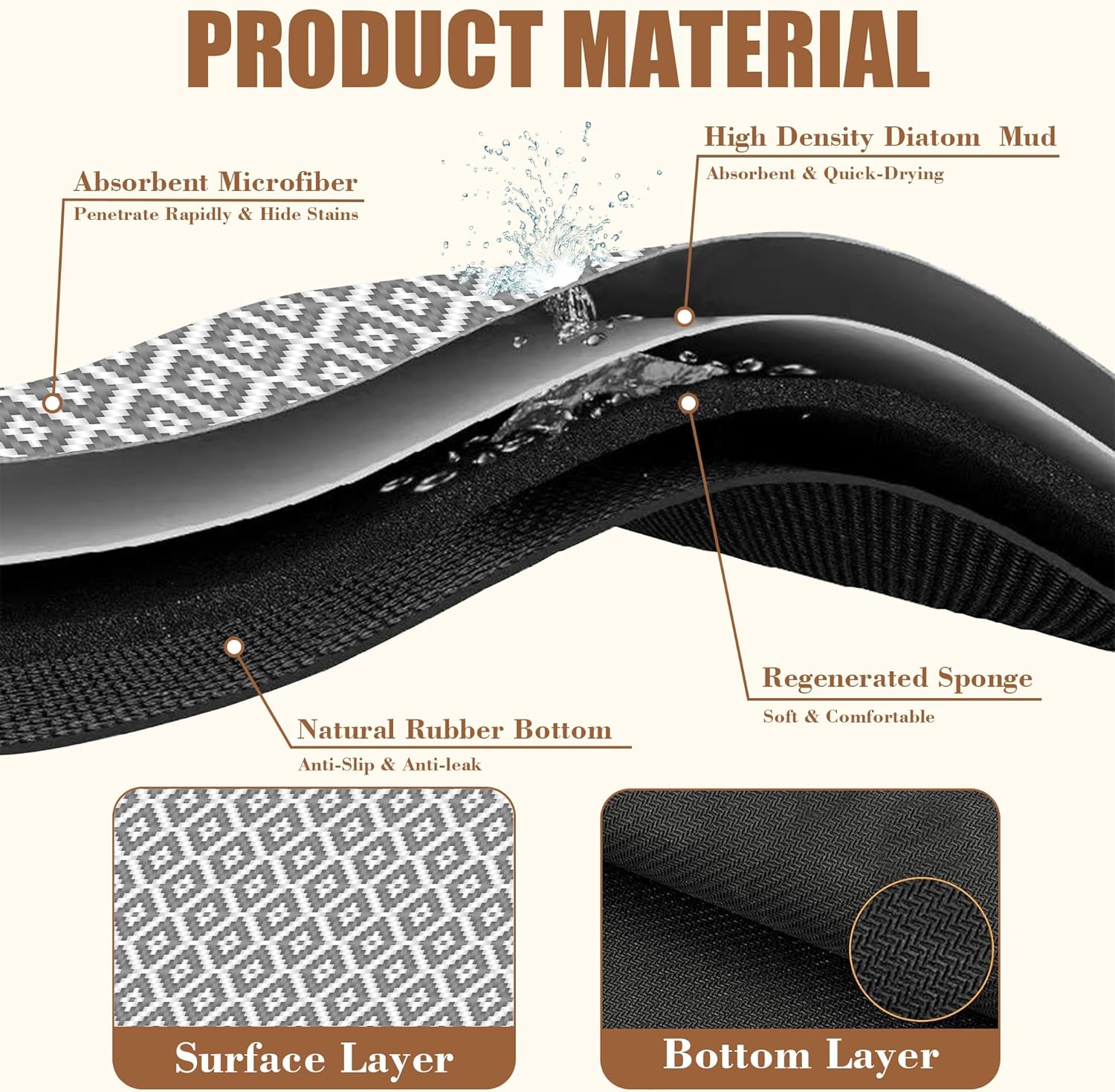 Ethnic Geometric Dish Drying Mat for Kitchen Counter Coffee Bar Mat Hide Stain Absorbent Rubber Backed Dish Drainer Rack Pad Coffee Maker Espresso Machine Table Accessories 15.7 x 23.6 Inch