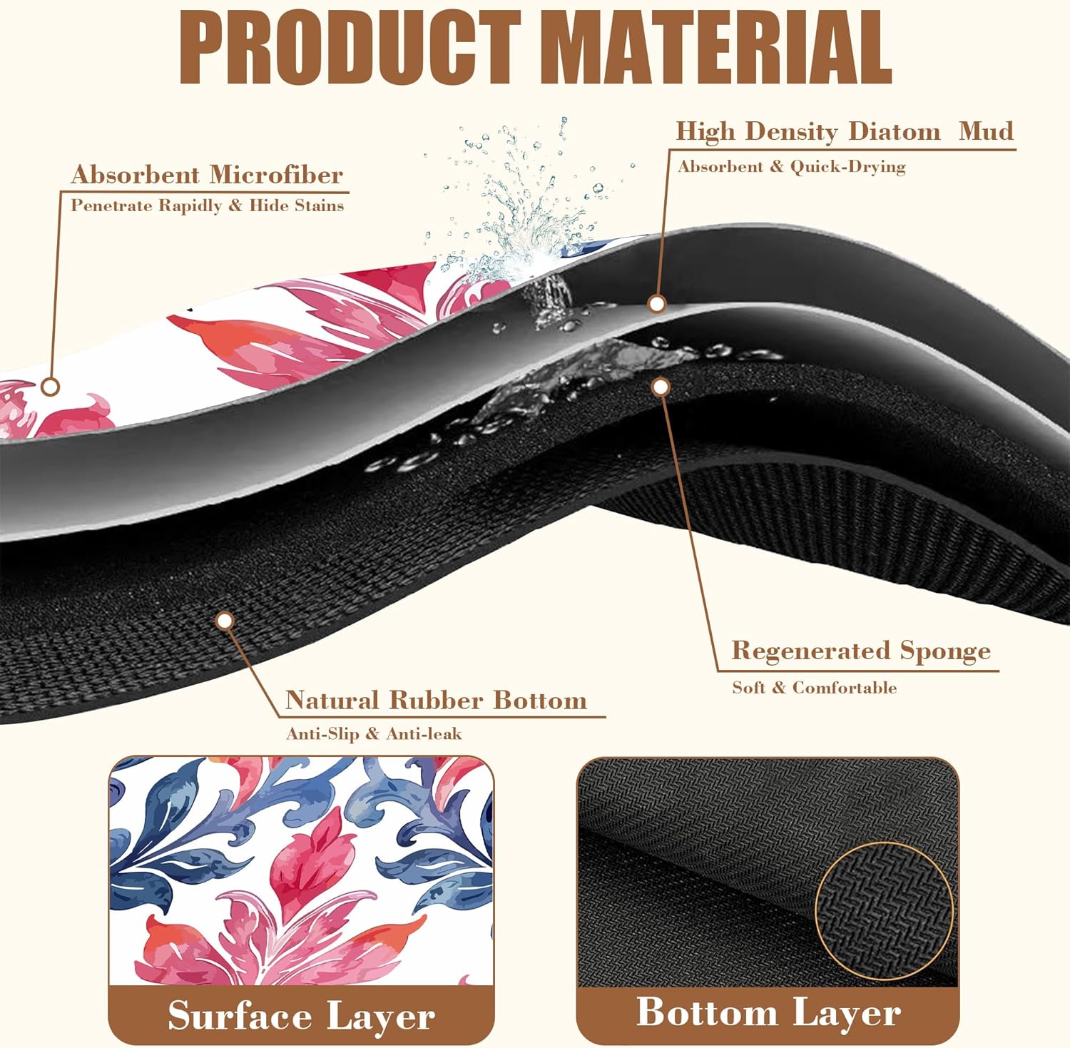 Blue and Pink Damask Coffee Mat Absorbent Dish Drying Mat for Kitchen Counter Hide Stain Coffee Bar Accessories with Rubber Backed Fit Under Espresso Machine Cafe Table, 15.7 x 23.6 Inch