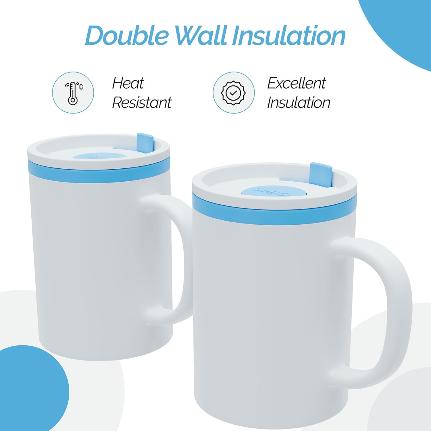 Copco Iconic 16oz Double Wall Insulated Desk Mug with Lid & Handle, Set of 2, BPA-Free Reusable Plastic, Spill-Proof, Microwave & Dishwasher Safe, Wide Mouth, Cup Holder Friendly (Teal)