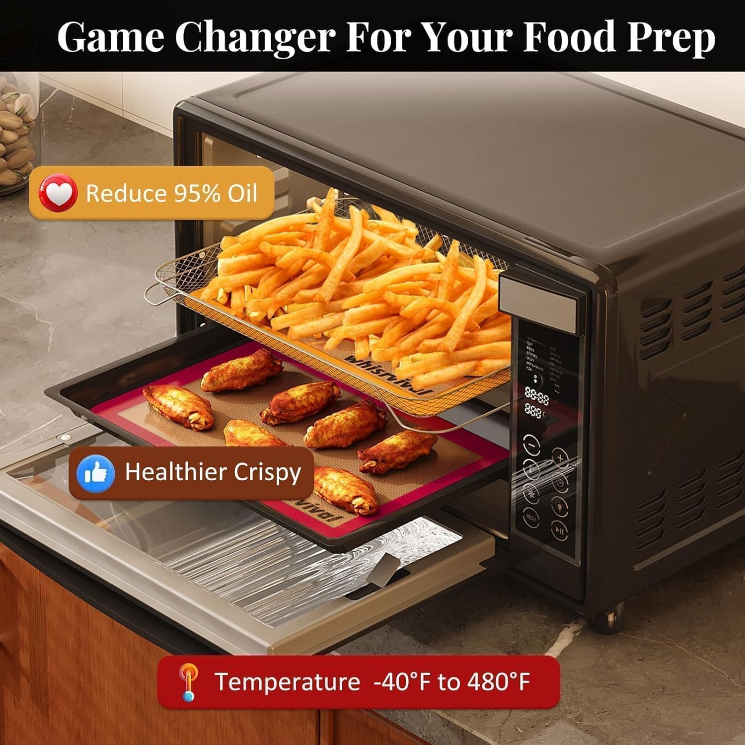 - ▶Even Heat, Nice Results: Say goodbye to uneven baking! whisrvival silicone baking sheets for oven are heat-resistant from -40°F to 480°F, our baking mats silicone for baking sheets are safe for use in freezers, oven, microwave, and provide consistent heat distribution, so your cookies, veggies, and other dishes come out crispy, flavorful, and perfectly browned every time—no burnt edges or undercooked centers