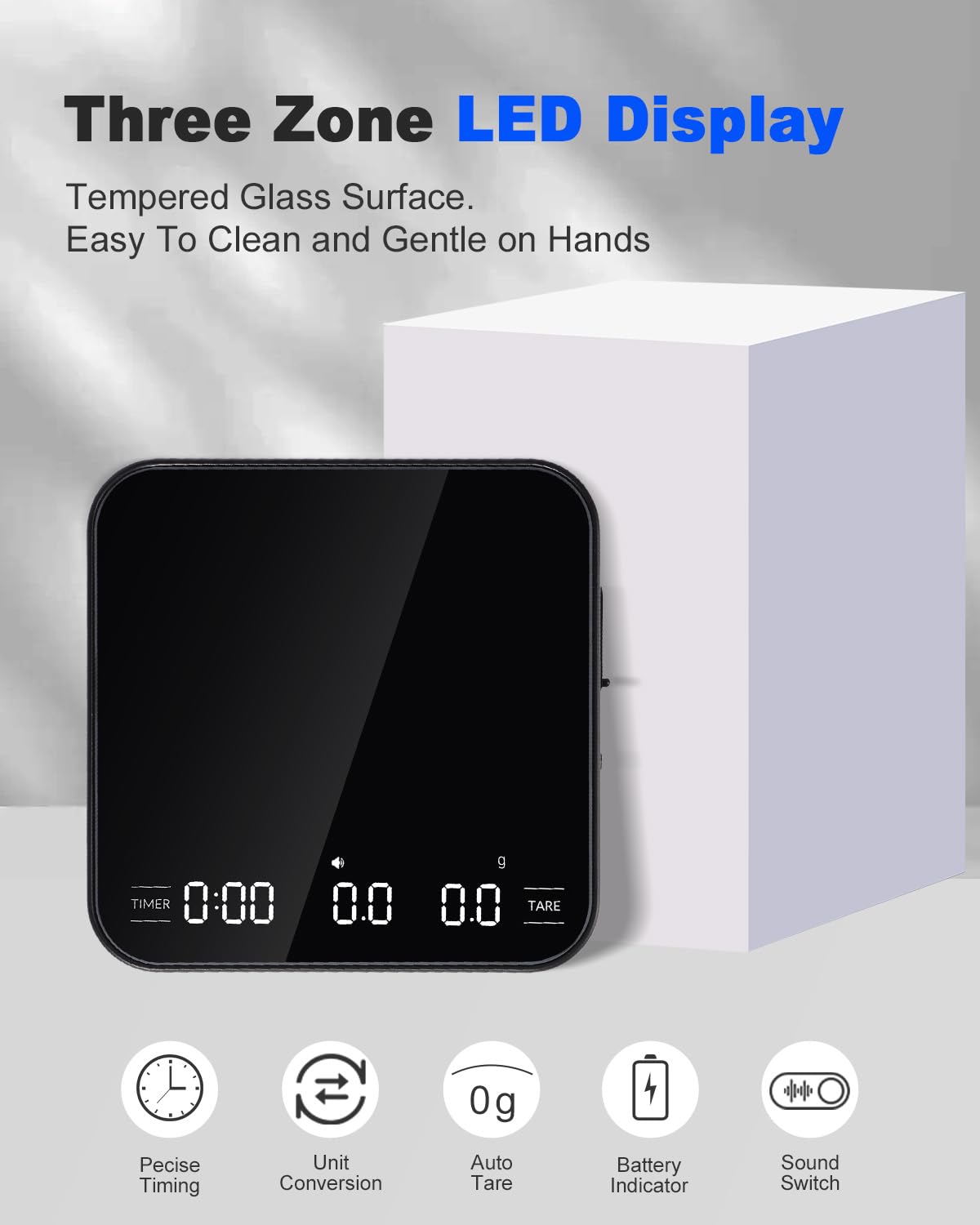 - Elegant & Functional Design: Lamido coffee scale features a sleek, minimalist design with a tempered glass top. Its seamless surface ensures waterproofing and easy cleaning. It has a stunningly clear LED display and touch-sensitive controls. Additionally, it includes a detachable silicone pad that provides waterproofing, slip resistance, scratch resistance, and heat insulation