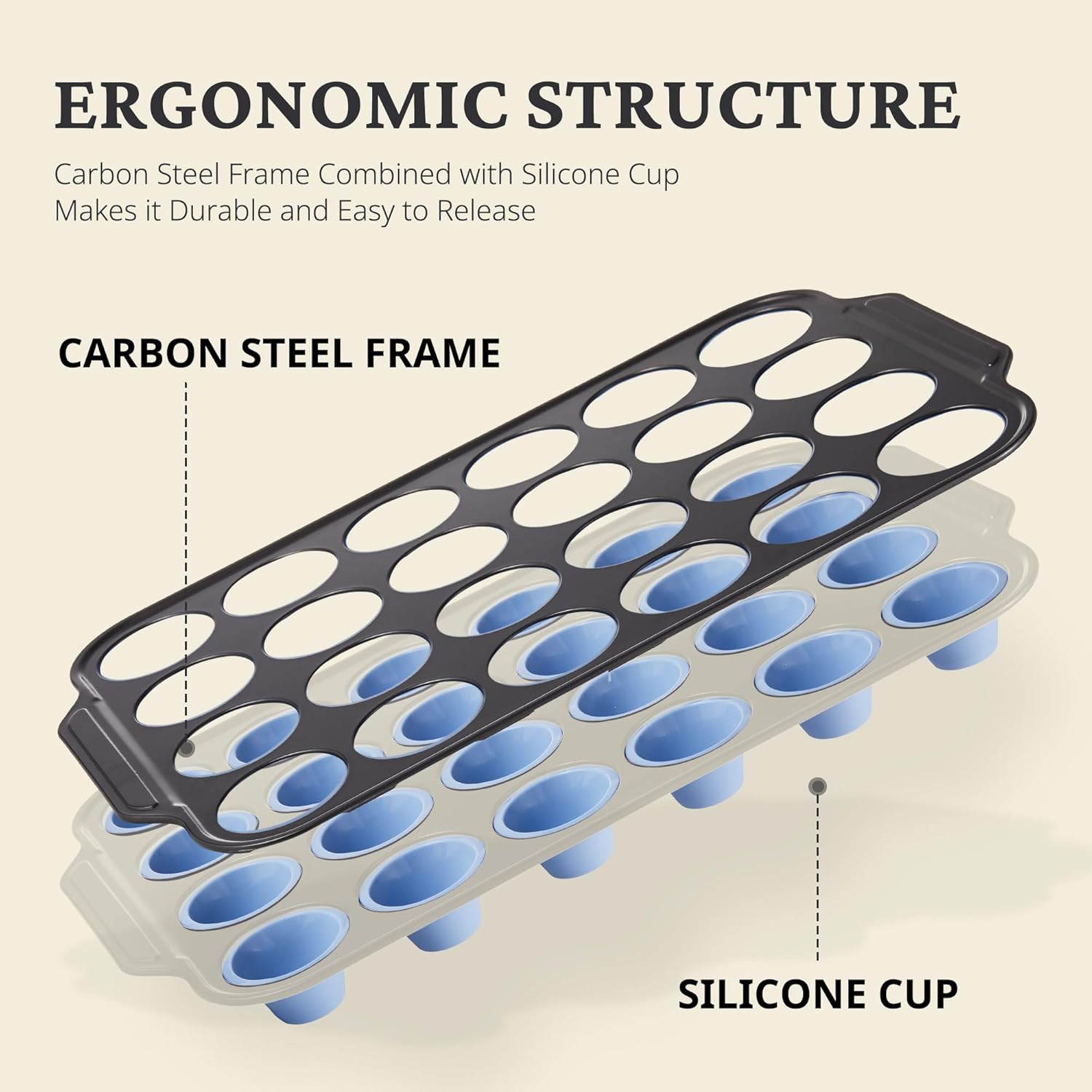 - HASSLE-FREE CLEANING - The combination of a carbon steel frame and silicone cups ensures that your mini muffin tin is easy to clean. No sticky mess—just a quick wash with soap and water, and it's ready for your next batch of treats.